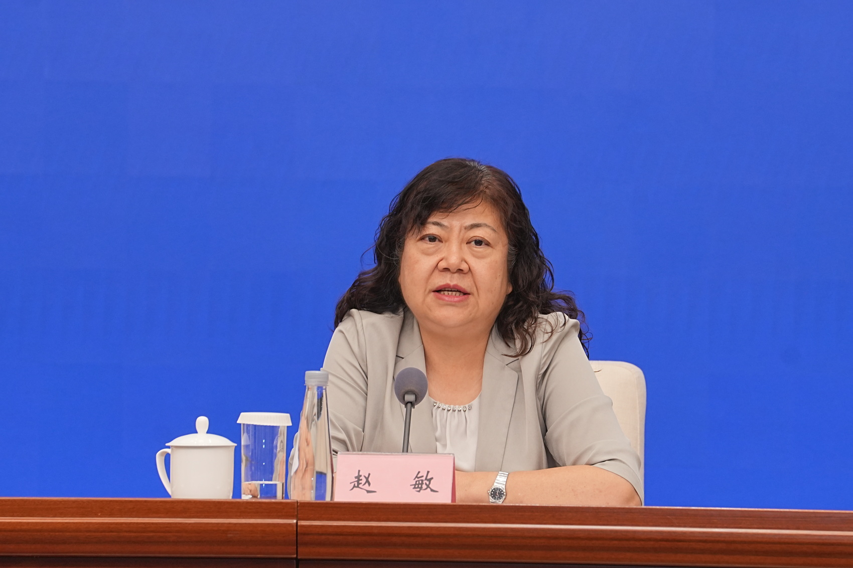 科技厅党组成员、机关党委书记赵敏在政策吹风会上介绍相关情况。苏鹤 摄