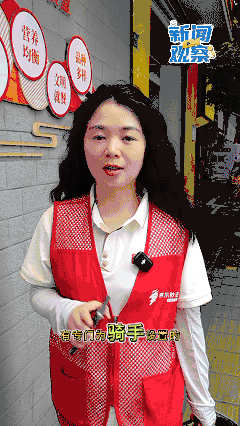 记者刘晏男:“现在是中午1点05分,我在临东社区幸福餐厅,在这里,有专门为骑手设置的特价套餐,走,跟我一起去看看,今天都有啥好吃的。”