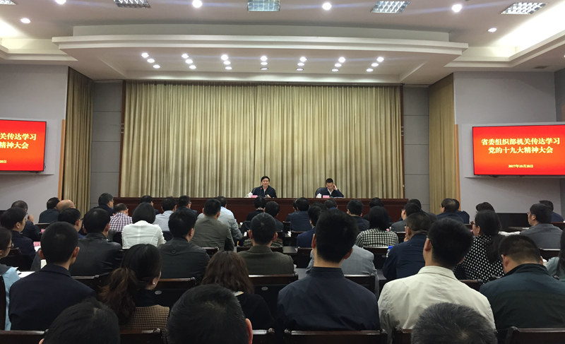 会议指出,党的十九大是在全面建成小康社会决胜阶段、中国特色社会主义进入新时代的关键时期召开的一次十分重要的大会。组织部是政治机关,必须以高度的政治自觉性和政治责任感,坚决落实中央和省委安排部署,扎实有力抓好部机关、全省组织系统、各级党组织和党员干部的学习贯彻,迅速掀起学习贯彻十九大精神热潮。要突出融会贯通狠抓学习,以十九大报告、党章(修正案)和习近平总书记在十九届一中全会上的重要讲话为重点,原原本本通读、字字句句研读、反反复复精读,深刻领会把握十九大主题的新宣示、十八大以来历史性变革的新成就、中国特色社会主义进入新时代的新论断、我国社会主要矛盾发生变化的新特点、习近平新时代中国特色社会主义思想的新指引、分两步走全面建设社会主义现代化国家的新目标、党的建设新要求、党章的新规定,切实做到深学深悟、真懂真知、笃悟笃行。
