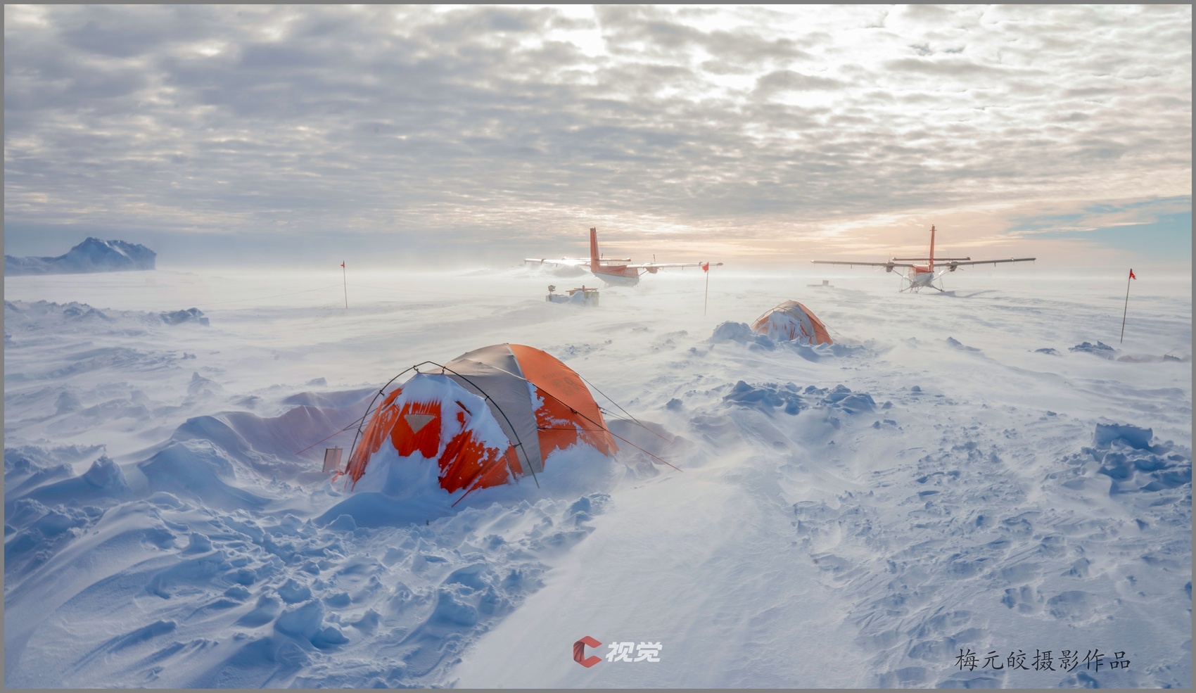 狂风暴雪把营地帐蓬埋了一半,每天要靠工作人员除雪才能进出。