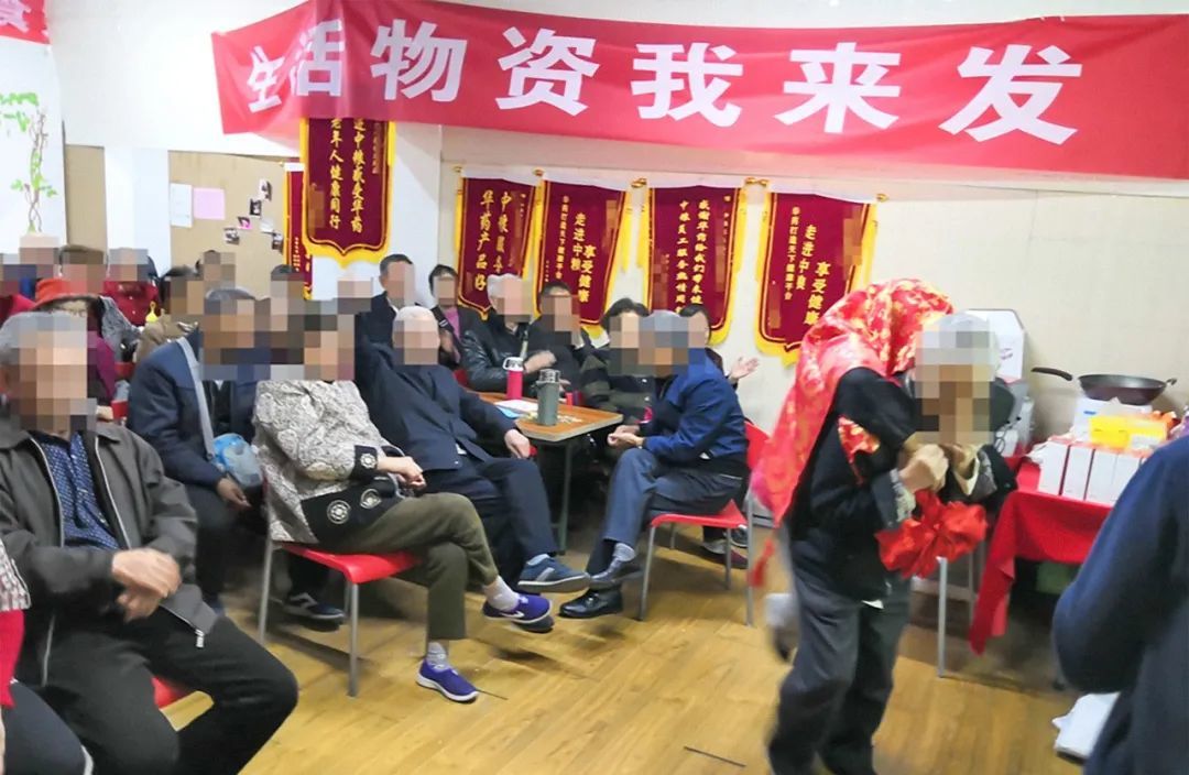 在警方获取的一段会销视频中,密闭会议室里坐着几十个老人。自称“退休教授”“医药专家”的人轮番登场,同时有人在现场冒充观众带头鼓掌喝彩,营造氛围。