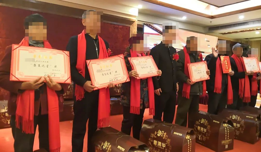 诈骗团伙在讲座中给老年人“颁奖”加深他们的信任。(办案人员供图)