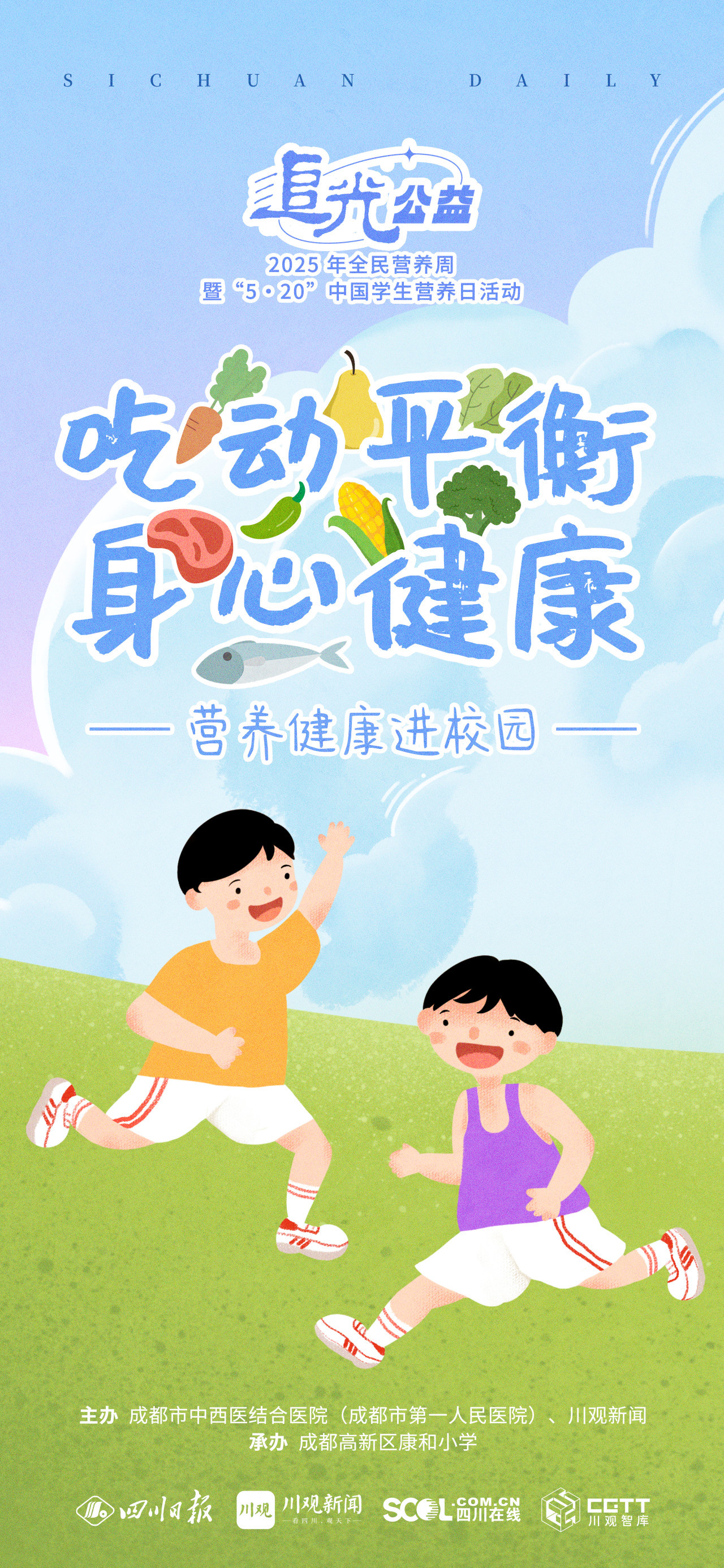今年5月17日至23日是第11届全民营养周,5月20日是第36个中国学生营养日。川观新闻·追光公益携手成都市中西医结合医院(成都市第一人民医院)、成都高新区康和小学联合开展系列活动,为师生及家长传递科学饮食与运动结合的理念。