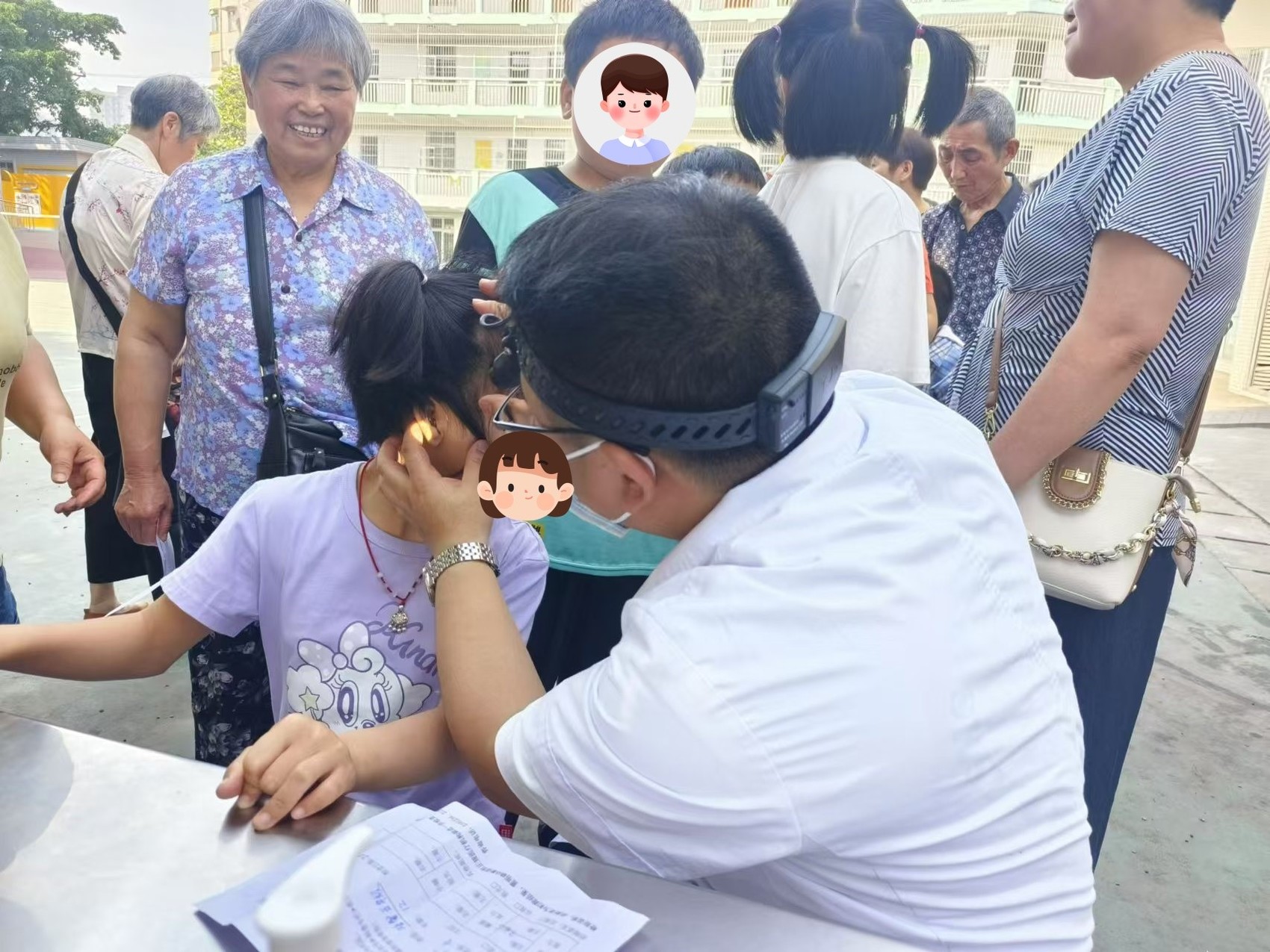 在耳鼻咽喉头颈外科检查区域,医生们则仔细检查了孩子们的耳朵、鼻子和喉咙,排查潜在的健康问题。如现场发现问题,现场就及时与学生家长沟通,并提供了相应的治疗建议和护理指导。面对一些因沟通障碍而紧张不安的孩子,医务人员化身“暖心大朋友”,通过温和的语言、亲切的肢体动作安抚情绪,帮助他们顺利完成检查。