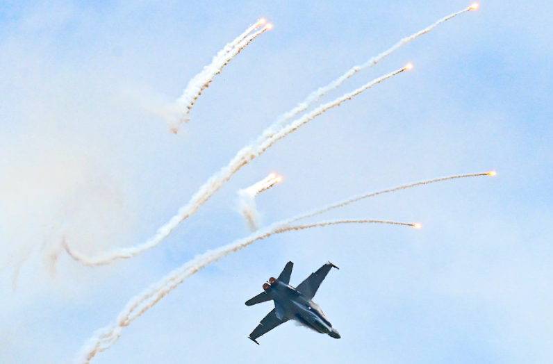 5月21日,在马来西亚兰卡威,马来西亚皇家空军的F/A-18D战机进行特技飞行表演。