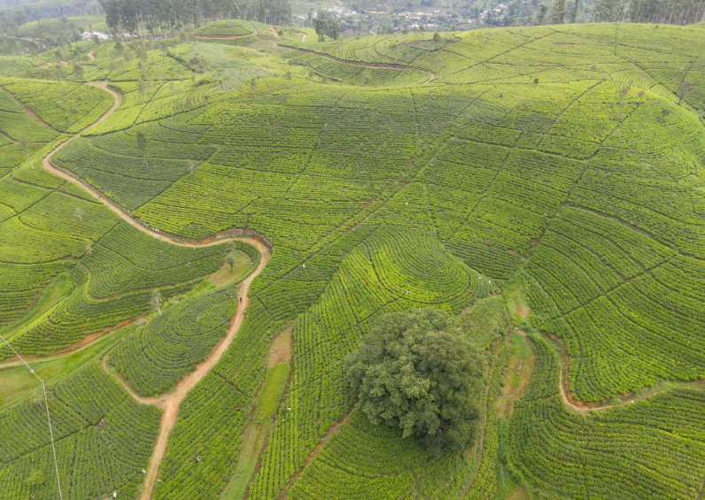 在斯里兰卡博加万塔拉瓦拍摄的茶园(无人机照片)。