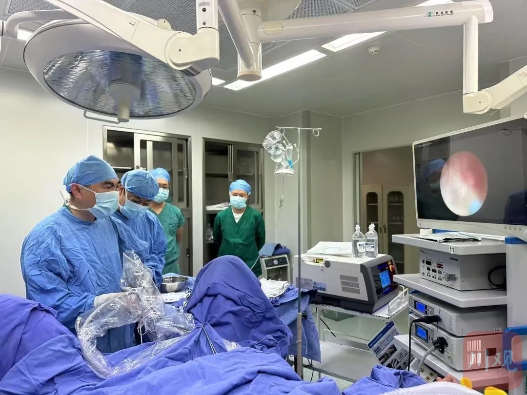 经术前准备,徐科伟和康定二院泌尿外科医护团队为该患者实施了经尿道输尿管镜左输尿管激光碎石取石+输尿管支架置入术。