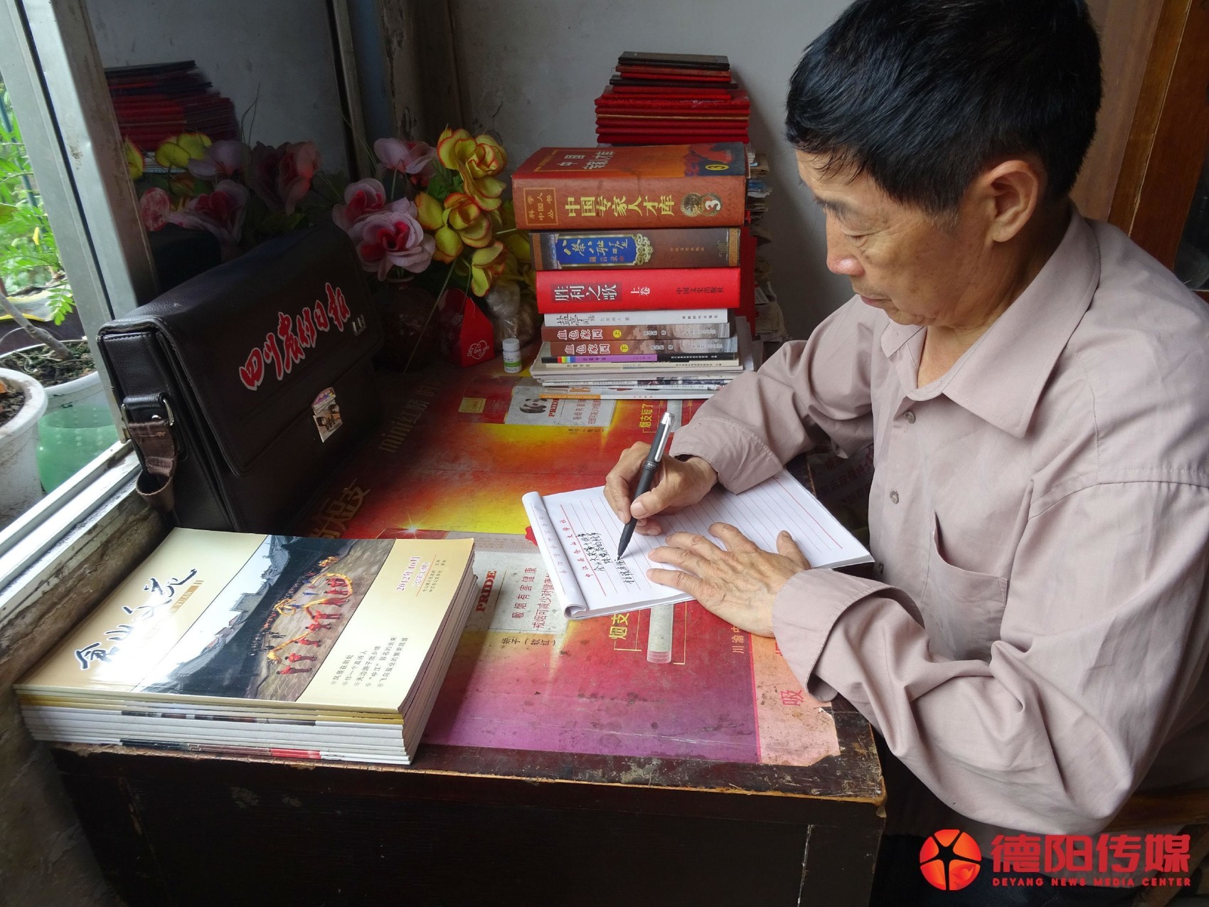 邓天有在极简陋的条件下,花五年时间创作完成长篇小说《胖镇风雷》。