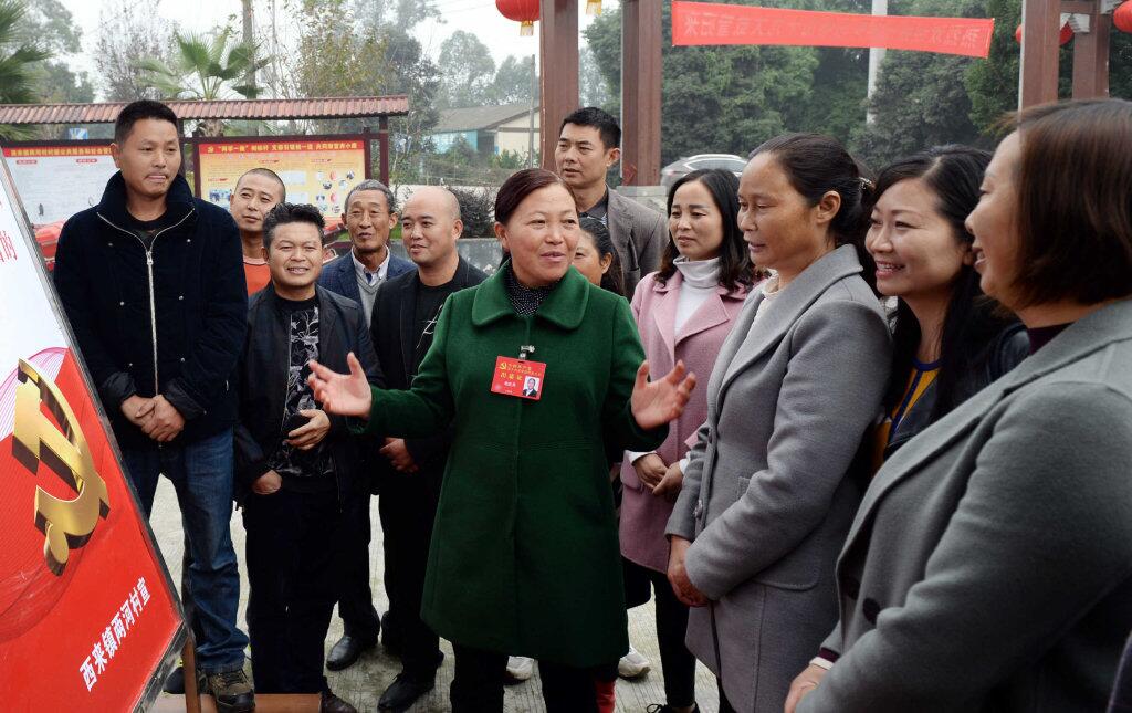 传达中,姚庆英首先提起了“乡村振兴战略”。“十九大报告里,我听到这点时很兴奋。因为我来自农村,自己就是农民。报告里说了,要实施乡村振兴战略,大家注意哦,这里用了‘战略’两个字,大家体会一下国家对农村发展的重视程度!”一席话,引得在座150多人会心的笑声。姚庆英继续说:“蒲江是农业大县,实施乡村振兴战略是我们的重大发展机遇,在座各位一定要掌握乡村振兴战略的精神内涵,抓住机遇实现更好的发展!”