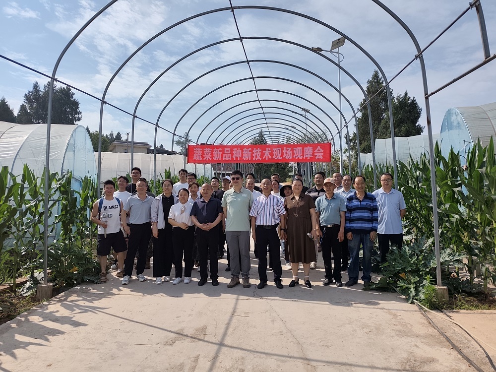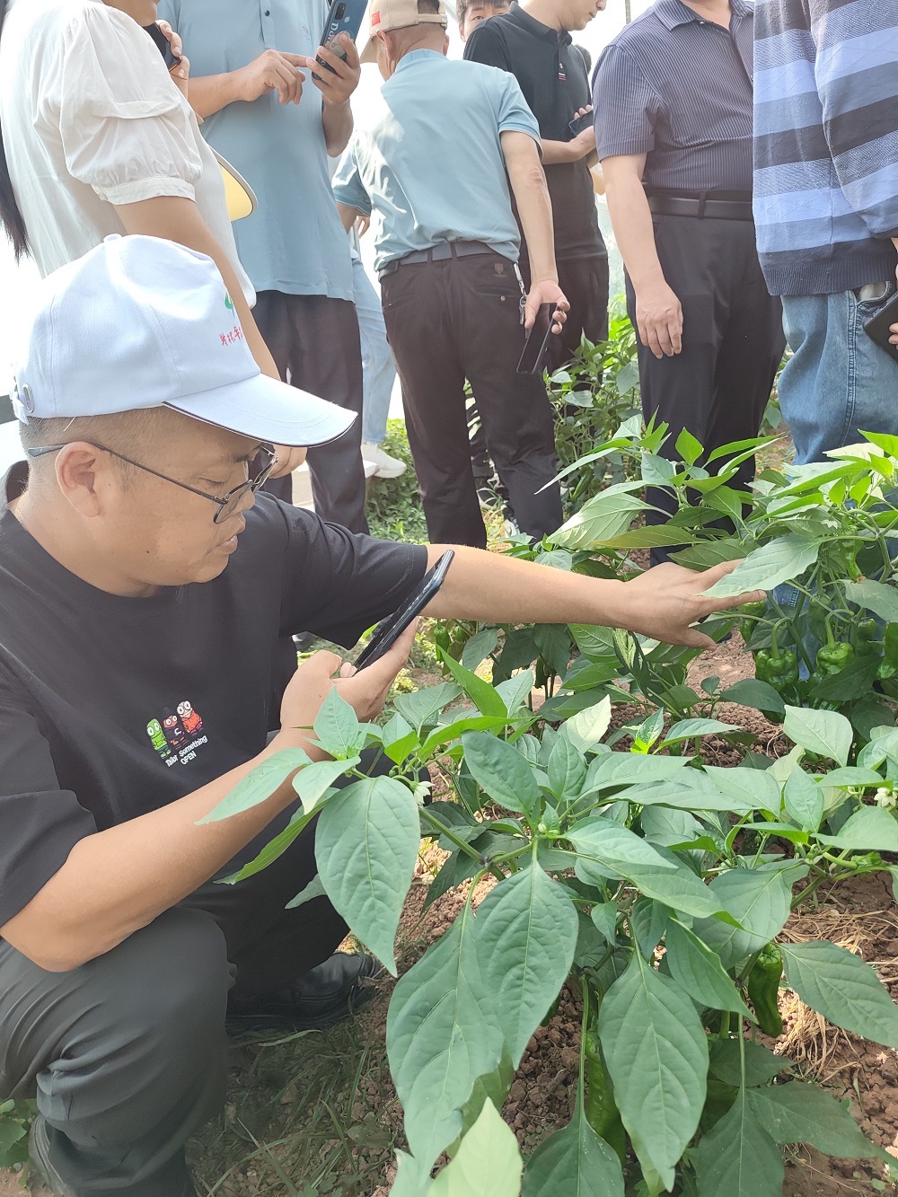 “这个‘川翠13号’是刺黄瓜类型,五六片叶时开始挂果,瓜条非常顺直,瓜把短,可食用部分多。皮薄,还有一股清香味。”四川省农业科学院园艺所研究员蔡鹏带领着参会人员一边在各个蔬菜大棚观摩,一边介绍,“这是我们自育的‘黑亮168’,果实短棒形,属于烧烤茄类型,吃起来口感软糯丝滑。品种早熟性突出,连续坐果能力强,稳产性好。”
