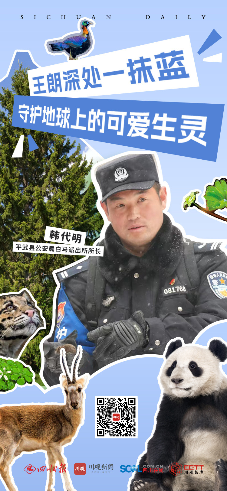说起平武,绕不开王朗。作为国家级自然保护区,这里每年有超过8个月的降雪期,茂密的原始森林和巍峨的雪山,让王朗成为冰雪秘境。这里是野生大熊猫的天然乐园,也是我国第一批成立的大熊猫保护区之一。白马派出所辖区位于大熊猫国家公园范围内,韩代明也被当地百姓亲切地称为 “熊猫警长”。