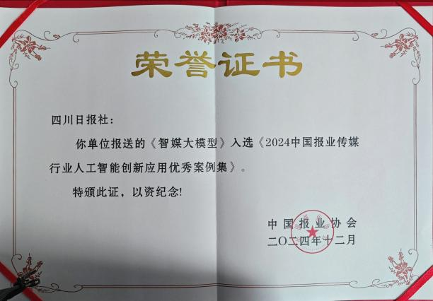 充分应用以大模型为代表的前沿智媒技术,持续推进智媒技术底座建设,“四川智媒云”一期上线,完成川报采编系统的合并迁移。在技术、内容、运营等93个功能点进行系统性迭代升级,助力三大领域的内容创作,鸽子花频道、人文频道、热评频道实现了用户投稿自动分发至CMS系统对应栏目的功能。上线“行云”公文智能助手和“若水”省情语料库两大大模型强应用产品。川观新闻研发的智媒大模型,成为传媒领域首个获得国家“生成式人工智能服务备案”和“境内深度合成服务算法备案”双备案的大模型,获评全国媒体融合技术应用案例一等奖。制定国内首个《数字记者信息管理办法》并发布,案例入选《中国虚拟数字人影响力指数报告》。