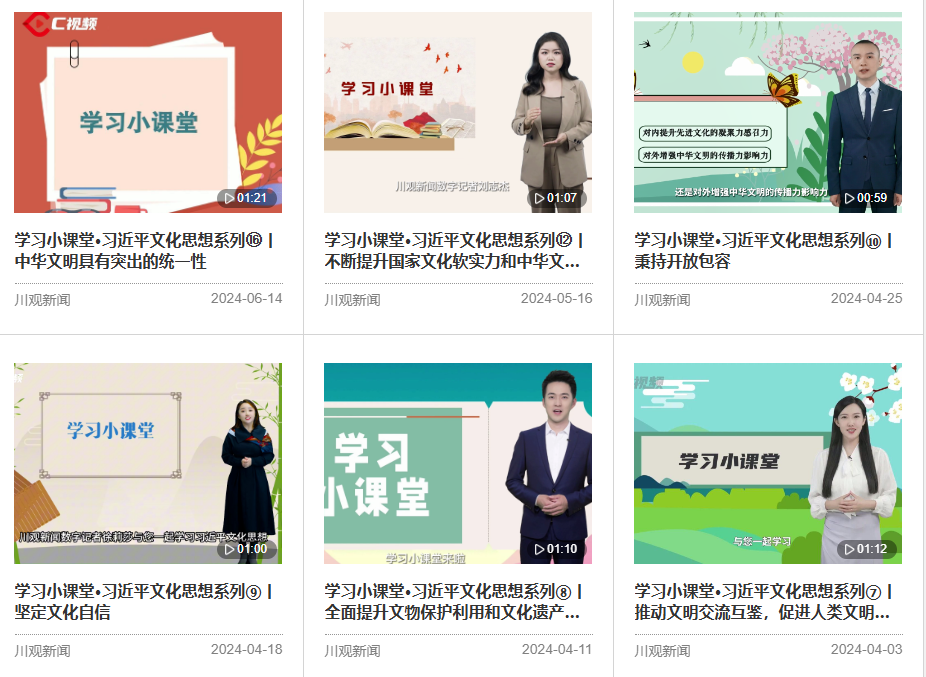 四川日报全媒体把持续深入宣传报道习近平新时代中国特色社会主义思想作为首要政治任务,坚持在头版头条、首页首屏,及时做好总书记重要活动、重要讲话和重要指示宣传报道。2024年在四川日报头版、川观新闻客户端首屏顶部、四川在线首页及部分三方平台账号对总书记的活动、讲话及相关权威解读稿件进行传播,发稿6500余篇,总阅读量超过10亿。精心推出《向总书记报告》特刊,及时推出总书记回信勉励之江小学学生特别报道和《北川石椅村迈向“更好的样子”》等系列融媒体报道;实施“头条产品”工程,打造“奋力谱写中国式现代化四川篇章”重点栏目,落版习近平总书记重要指示精神在四川生动实践的鲜活报道。深入学习宣传习近平文化思想,在开机页设“学习小课堂”,以年轻态、视频化方式创新阐释习近平文化思想。综述《牢记总书记嘱托 文化传承发展奋楫扬帆——四川学习贯彻习近平文化思想一年间》、融媒产品《这样的中国你AI了吗》等,获中宣部新闻阅评等肯定。
