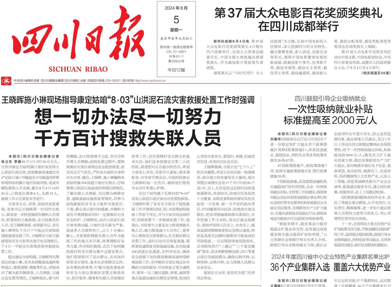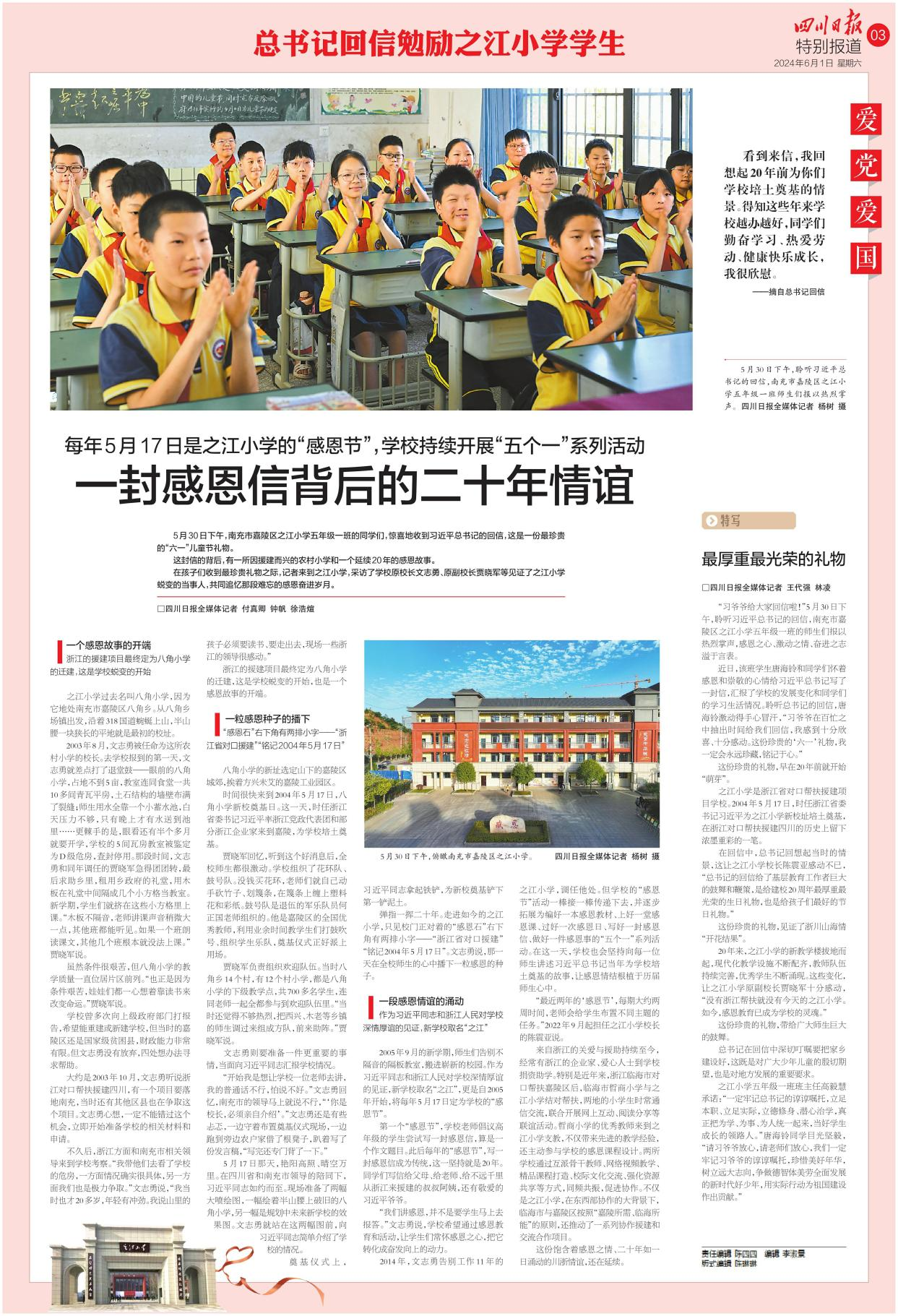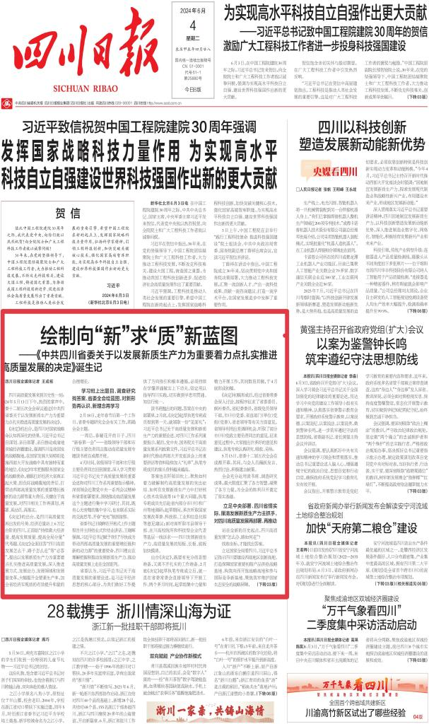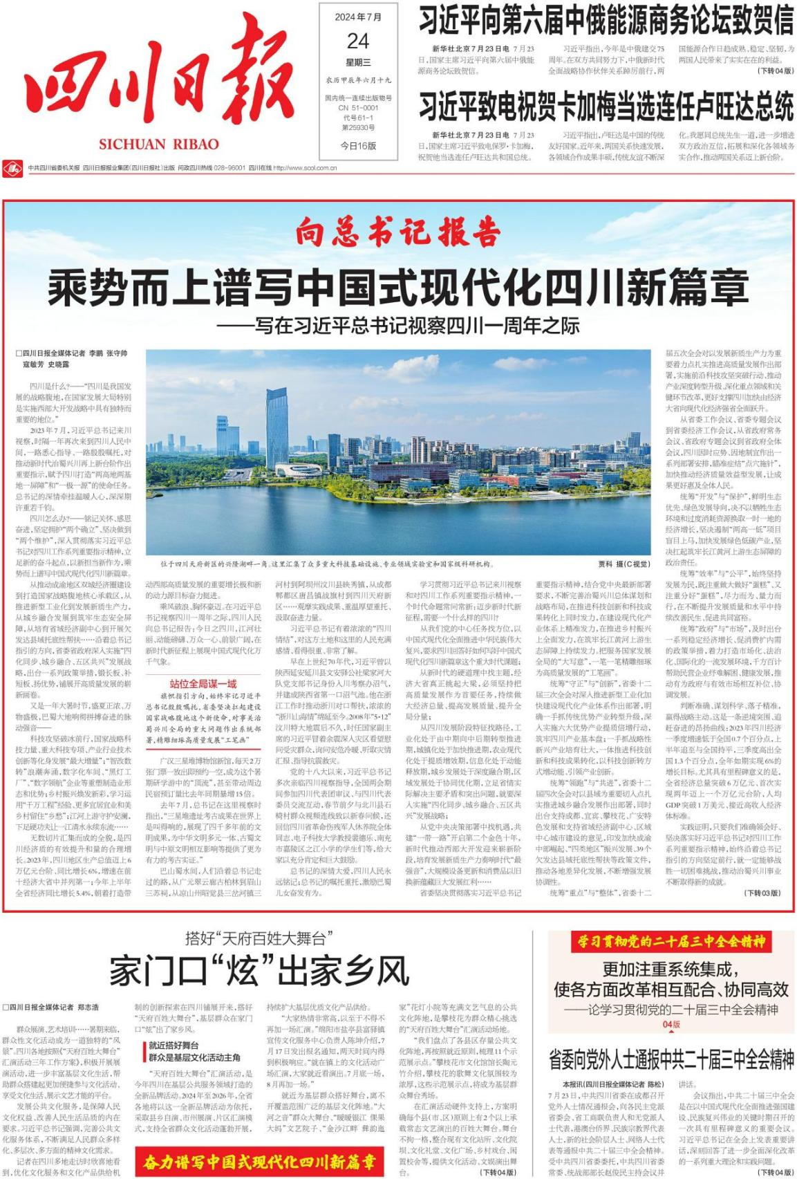 (2024年7月25日《四川日报》推出《向总书记报告》特刊)