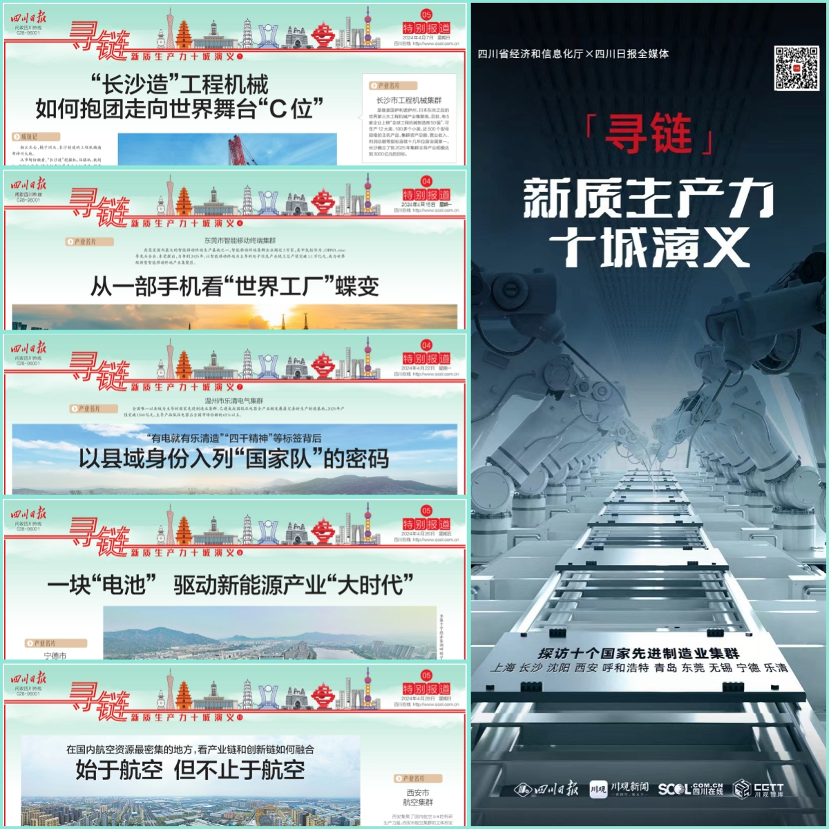 《寻链——新质生产力十城演义》是四川日报全媒体推出的重磅策划,旨在走进国家先进制造业集群,共同感受创新中国的蓬勃律动、新质生产力的不凡生命力。
