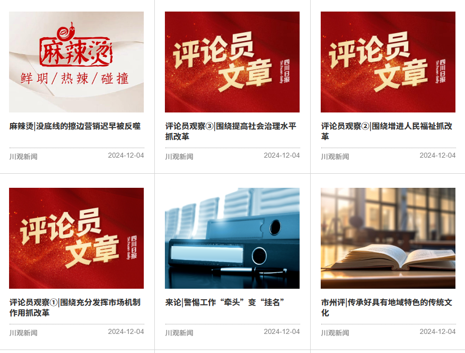 (川观新闻新开设“热评”频道,每日原创1-3条评论,提升了对社会热点的引导力。)