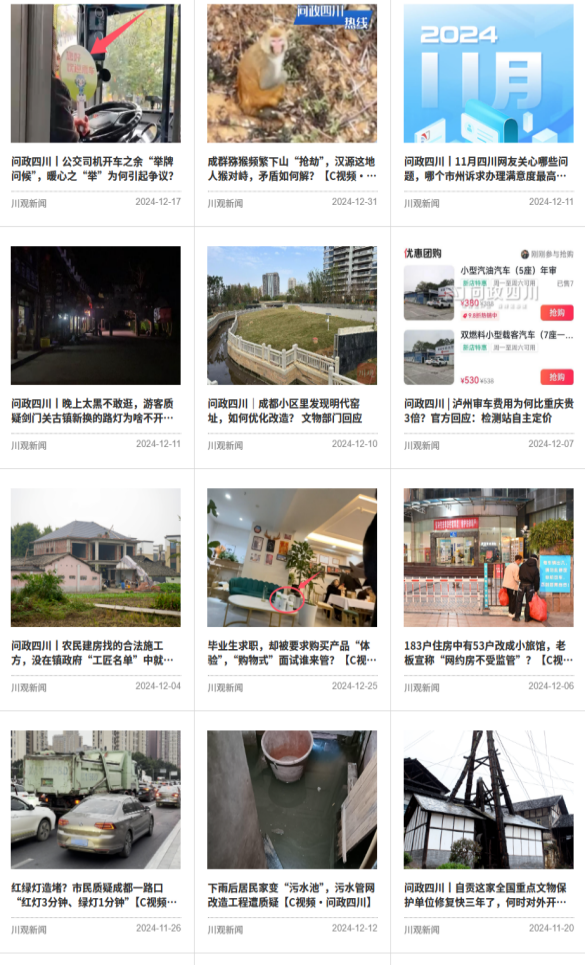 加强群众服务平台建设。自主研发的“问政四川”元服务亮相,全天候、全场景、全链路提供智能服务功能,极大提升了服务的便捷性。截至2024年底,全省党政部门、事业单位、企业实名入驻“问政四川”平台达到12452家(个),共有近14万人次网友通过“问政四川”平台,问需、问难、问计、问政,有效诉求量比2023年度上升了21.89%。网友诉求办理率达到98.37%,其中,98%的诉求都能在5-15个工作日内得到有效解决。《回村10多天 赶了20多场酒席》《“猴哥”带来的烦恼如何解》等报道,为民生实事落地落实助力。
