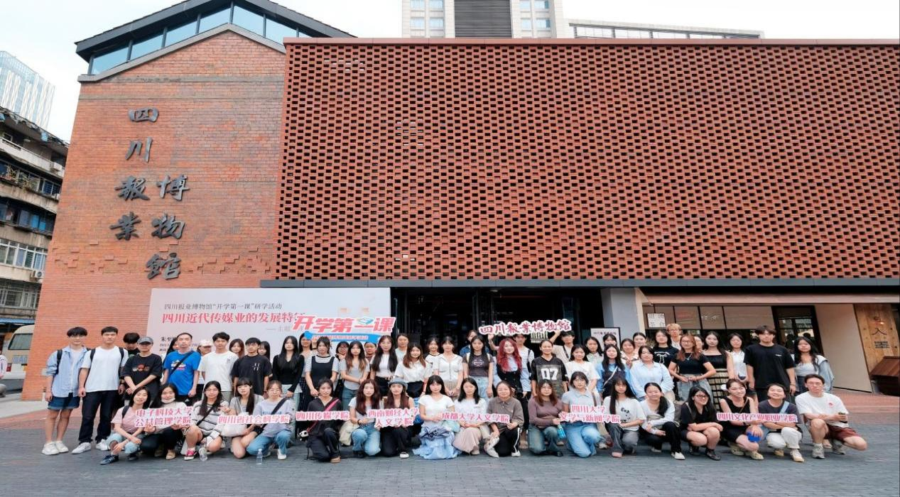 (四川报业博物馆与四川大学等15所高校院所建立了研学交流机制,已成为“开学第一课”系列研学活动之一。)