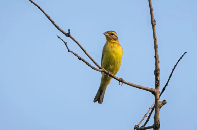 ▶ 2022年5月,湖北郧阳湖国家湿地公园首次于初夏季节观测到50余只黄胸鹀,此前多为冬季迁徙记录。