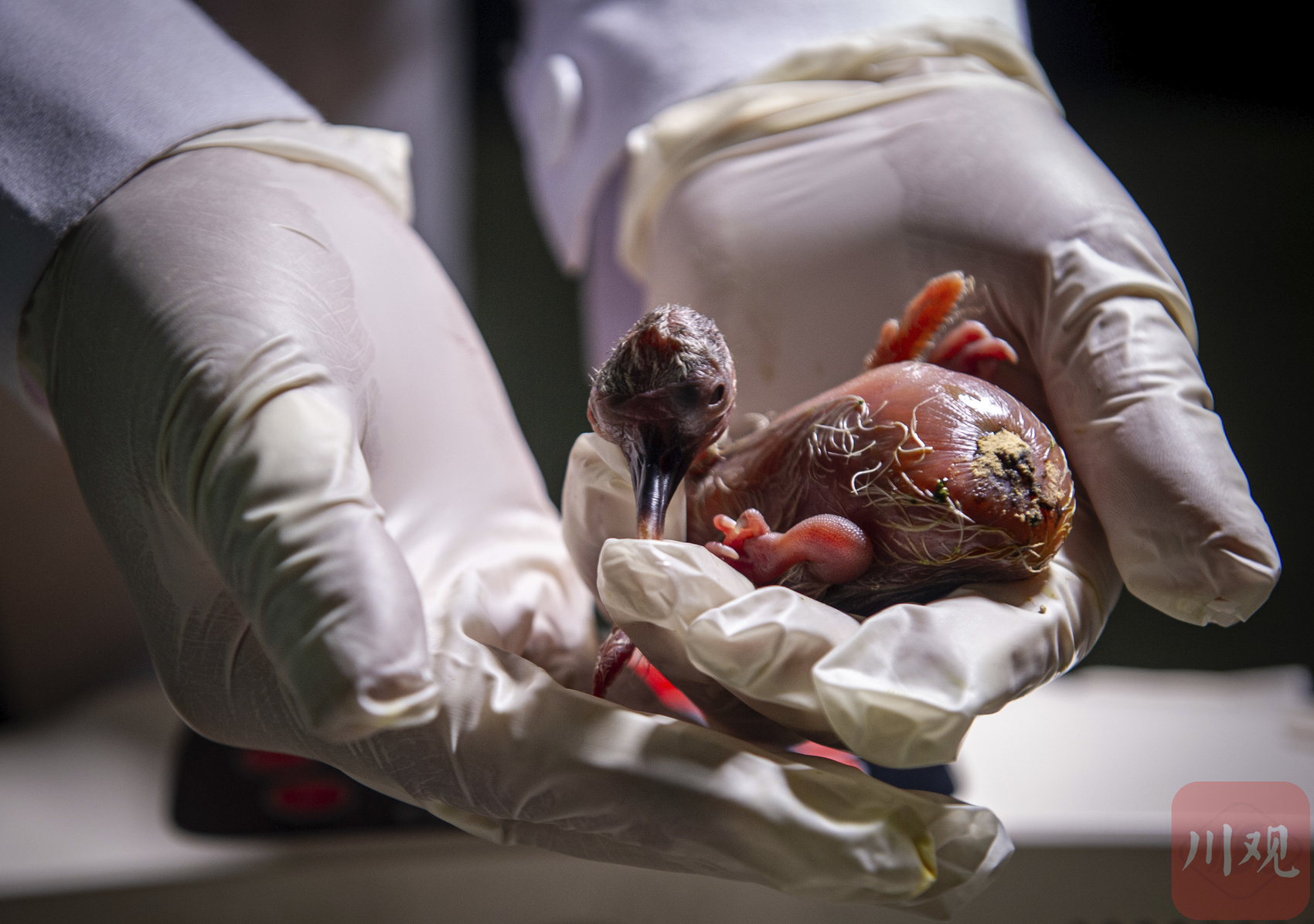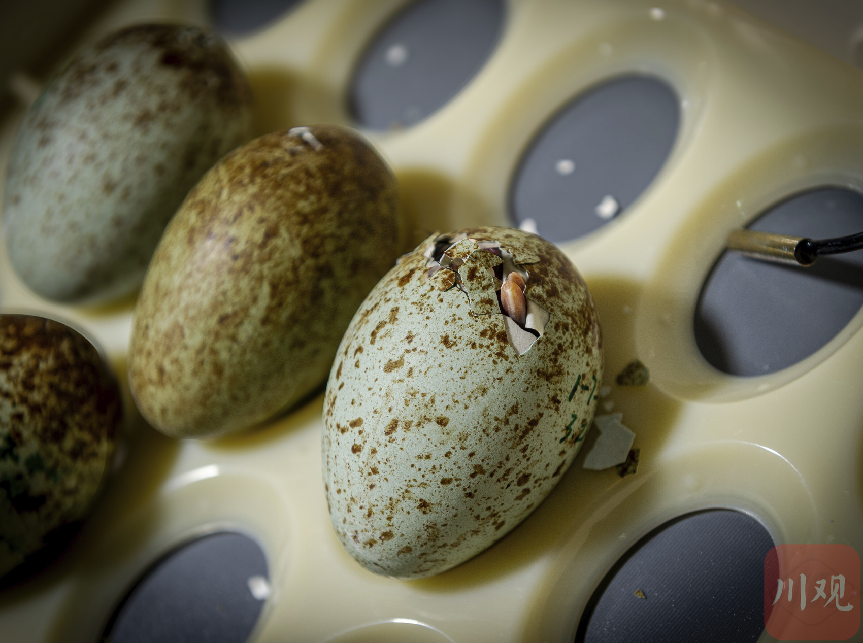 2017年4月18日,峨眉山生物资源实验站内,一只朱鹮雏鸟破壳而出。这是第一只经人工繁育诞生于四川的朱鹮,被科研人员命名为“川001号”。这一朱鹮在川繁育的历史性时刻,被守候多天的川观新闻记者独家记录。