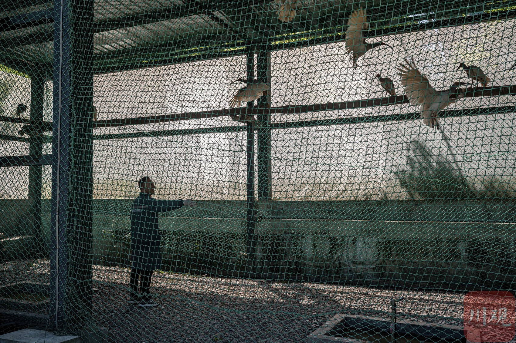 2024年,沐川朱鹮繁育中心修建了3000余平方米仿朱鹮野外栖息环境的野化培训笼舍,并于当年9月启动二期野化培训。通过模拟自然环境,重点训练朱鹮的野外生存能力,如觅食、飞行及躲避天敌等,成功培育出28只具备野外生存能力的个体。