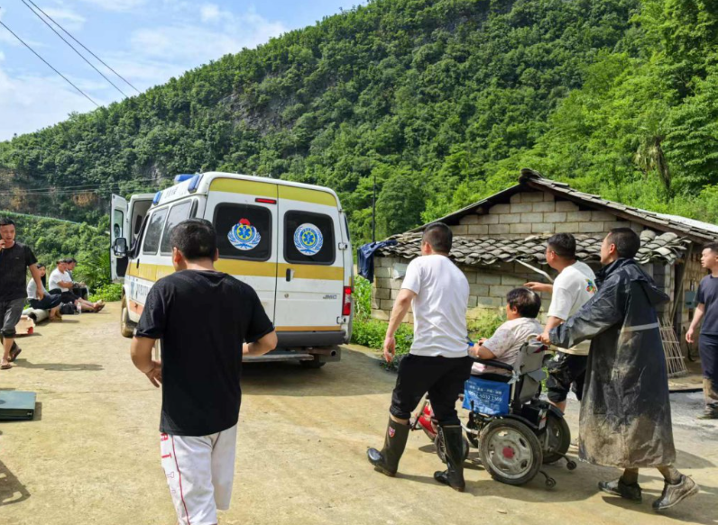 5月22日,救援人员在贵州省大方县果瓦乡庆阳村转移群众。
