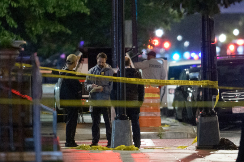 5月22日,在美国华盛顿,执法人员在枪击事件现场工作。