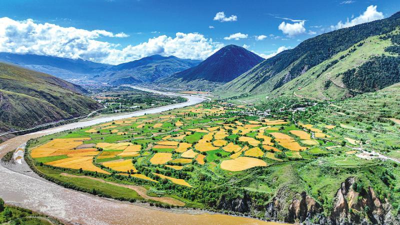 道孚县鲜水河畔青稞丰收在望 摄影 洛绒尼玛