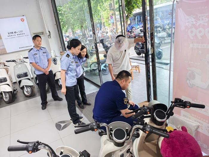 检查组随机抽查4家电动自行车销售门店,重点对经销商销售的电动自行车产品是否符合国家标准、是否存在销售无证或伪造认证证书、店内消防设施器材是否配备到位、疏散通道是否保持畅通、电气线路敷设是否符合规范要求等情况进行了检查。检查组要求经营单位负责人销售合规电动自行车、定期开展电动自行车防火自查自纠,责令1家门店现场整改。