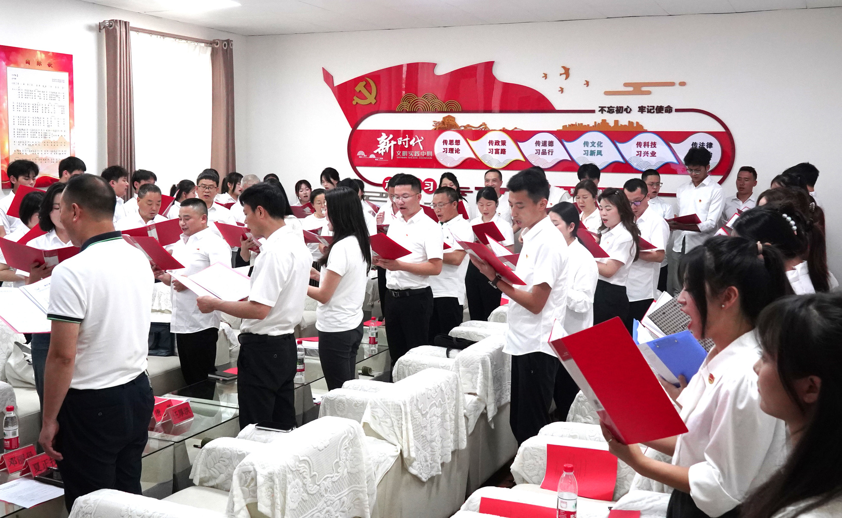5月22日,参加主题党日活动的校企代表正在合唱