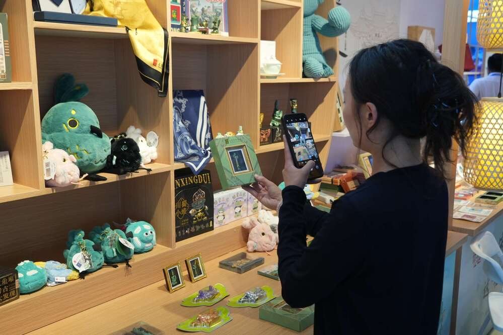 游客在三星堆文创前拍照。德阳市委宣传部供图