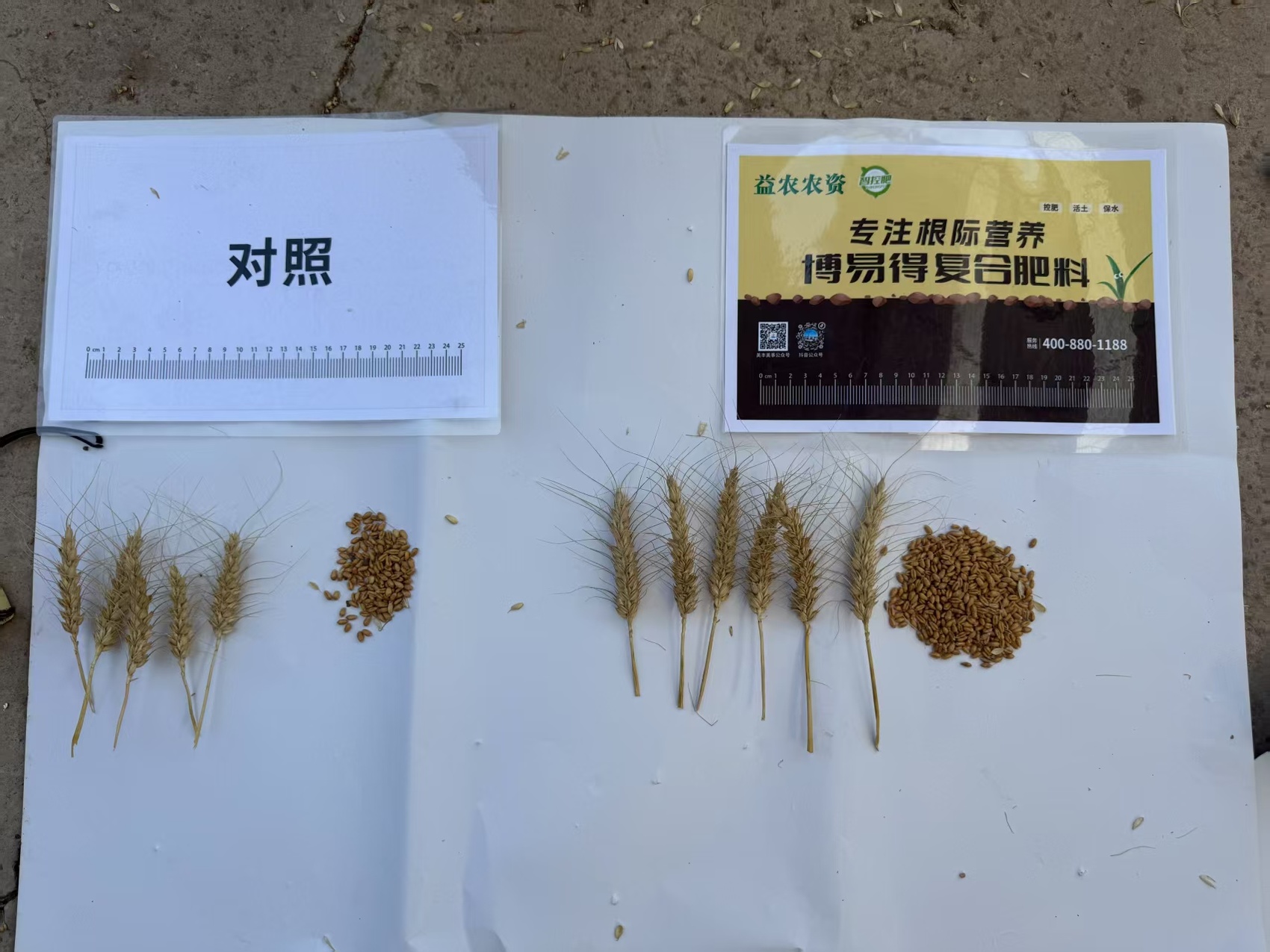 比对小麦穗长和籽粒饱满度等指标数据。