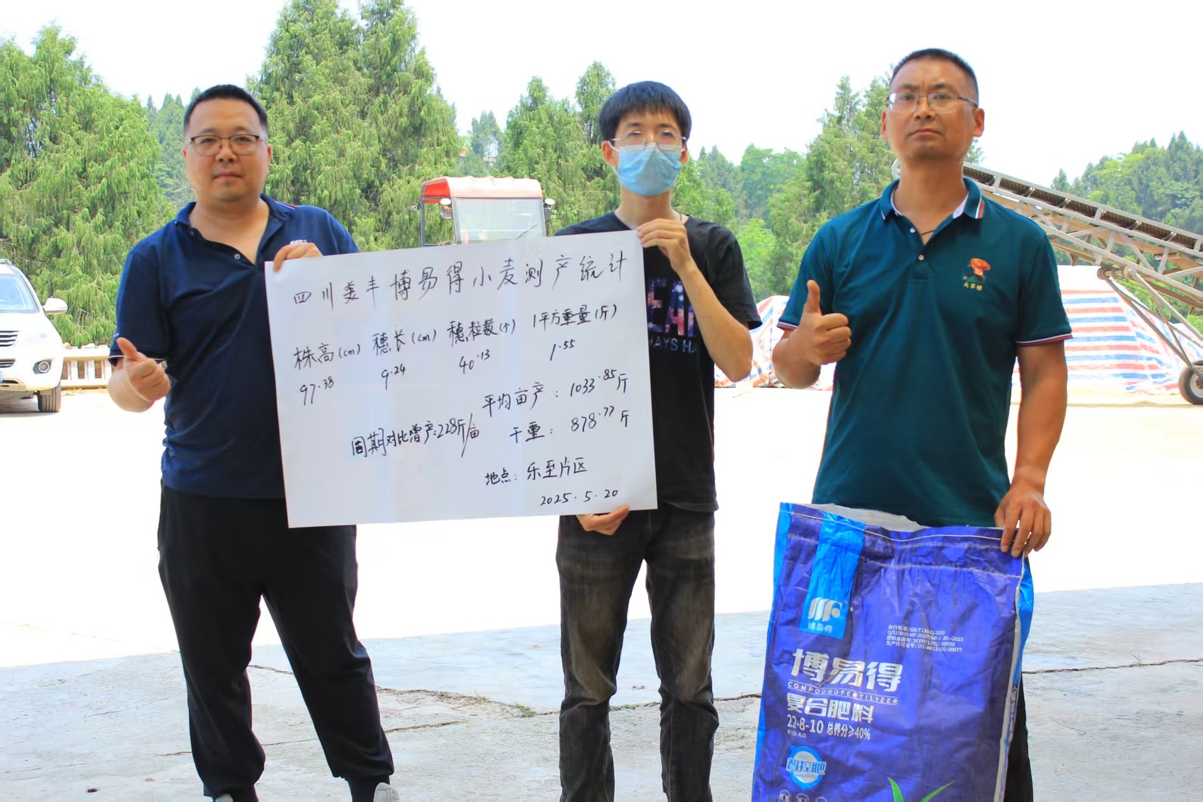5月20日,美丰农化服务团队来到了曾大哥的种植基地开展小麦测产试验,从株高、穗长、千粒重以及每平方米湿小麦重量等指标来看,美丰肥表现出彩。