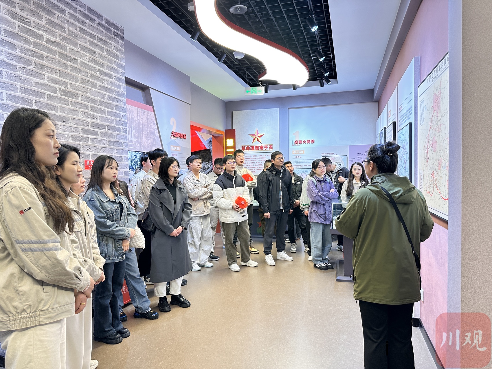 青年们走进红军长征磨西陈列馆,重温长征精神。