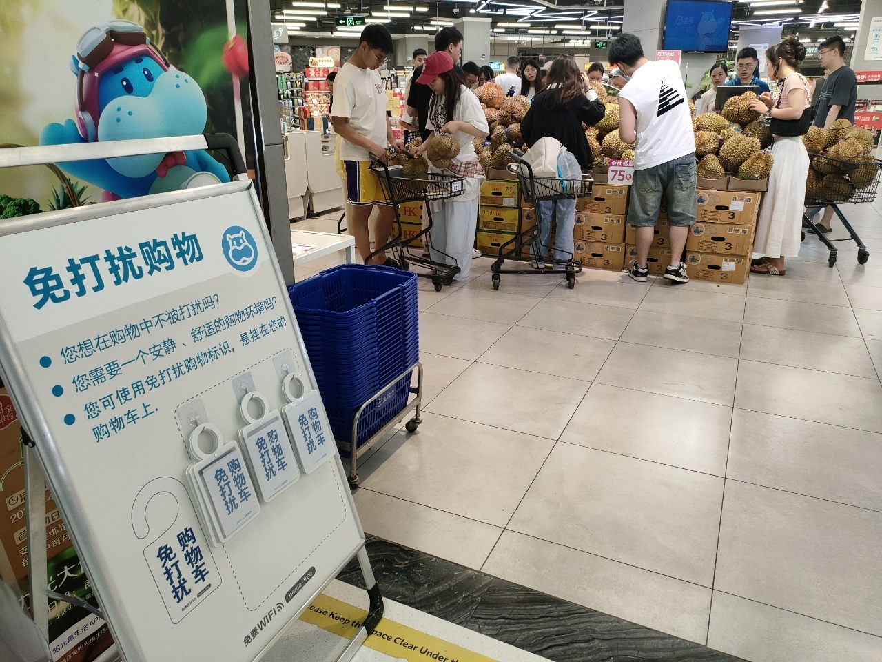 5月23日,记者从盒马了解到,5月上旬以来盒马陆续在门店落地“免打扰购物”服务,消费者到店仅需在入口处相关展板上取得“免打扰购物”标识牌挂置于购物车上,店内的相关会员卡推销将自动绕开这部分消费者,还消费者一个轻松惬意的购物环境。“以前会遇到工作人员推销办理会员卡,非常影响购物体验,现在上线‘免打扰购物’,感觉购物环境一下轻松了。”有消费者说。