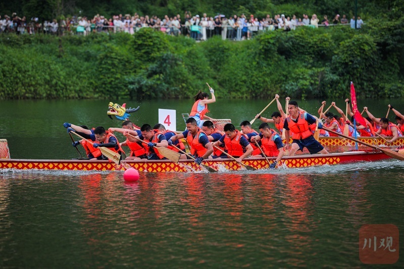 这是2025宜宾市“我们的节日·端午”示范活动现场,也是江安县连续第三年举办“多彩江安·欢乐四季”群众性传统龙舟文体活动。本次比赛分为200米和500米直道竞速赛,参赛队员来自江安县各乡镇、小微企业、外卖小哥等一线人员。