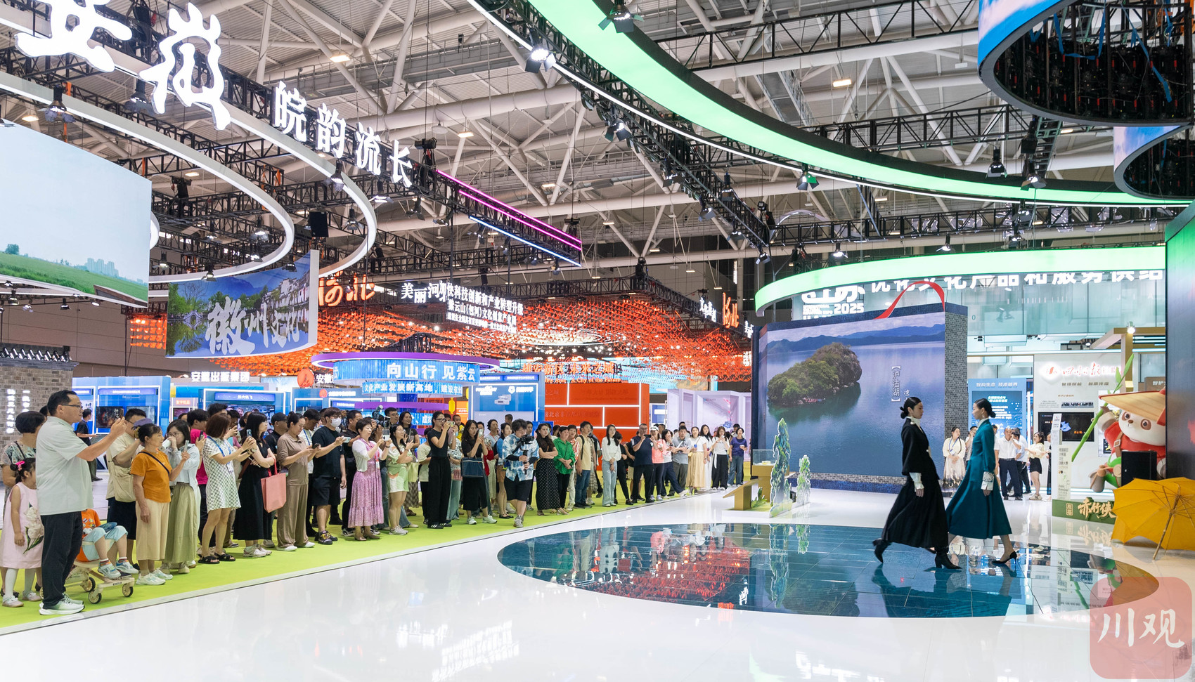 5月24日,一场 “民族时装秀” 在深圳文博会四川展馆上演。来自凉山的彝族姑娘小伙身着原创现代彝族服饰,演绎出一场吸睛十足的 “最炫民族风”。