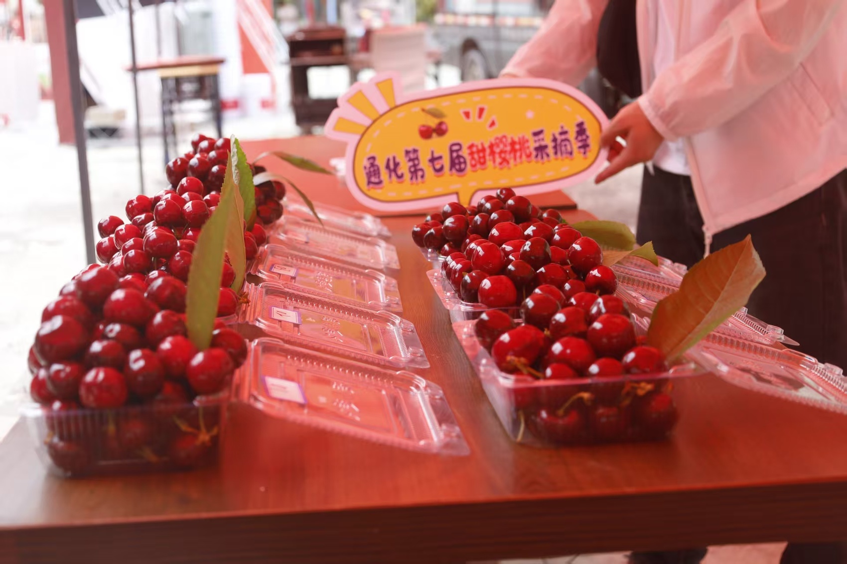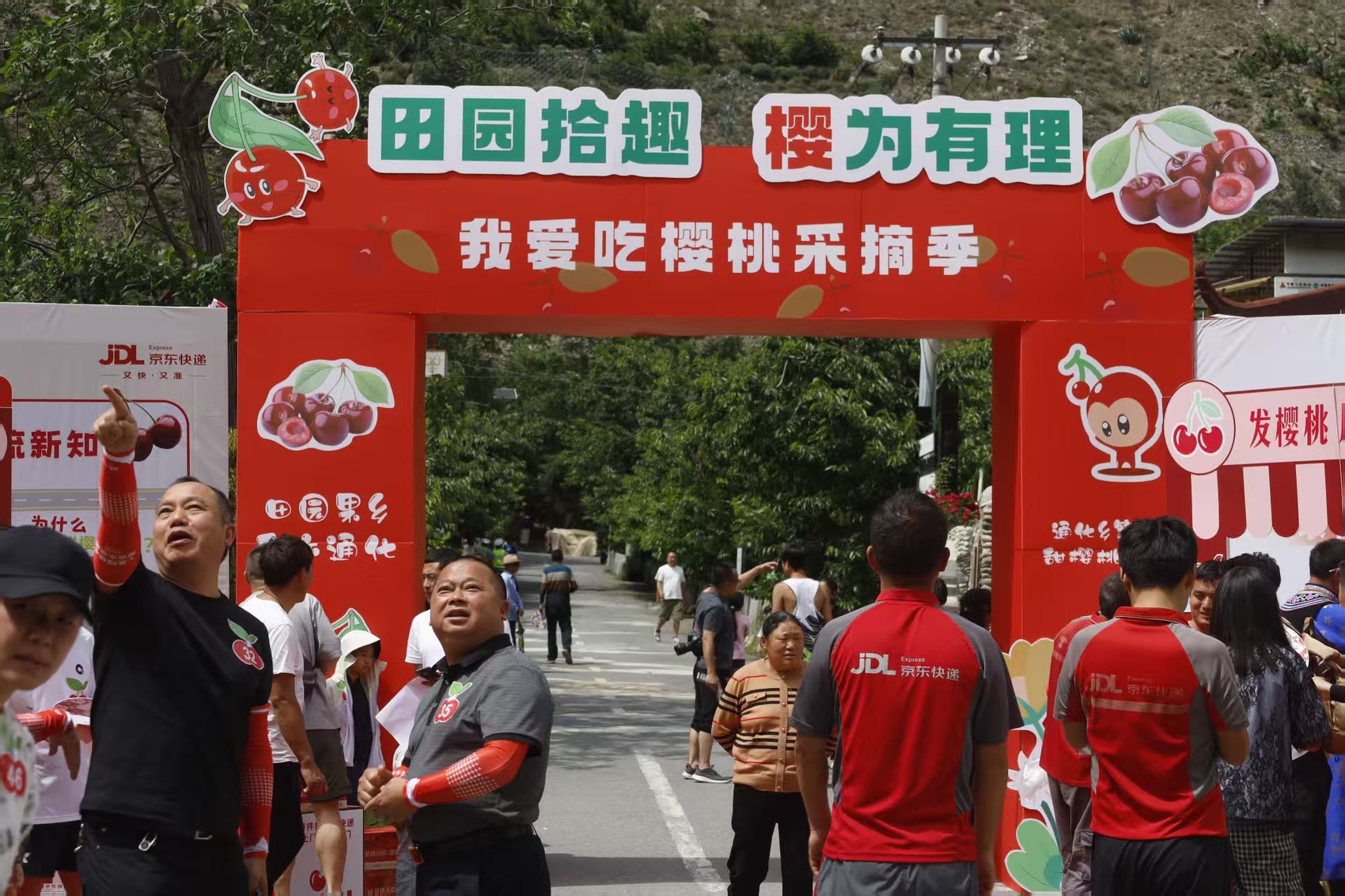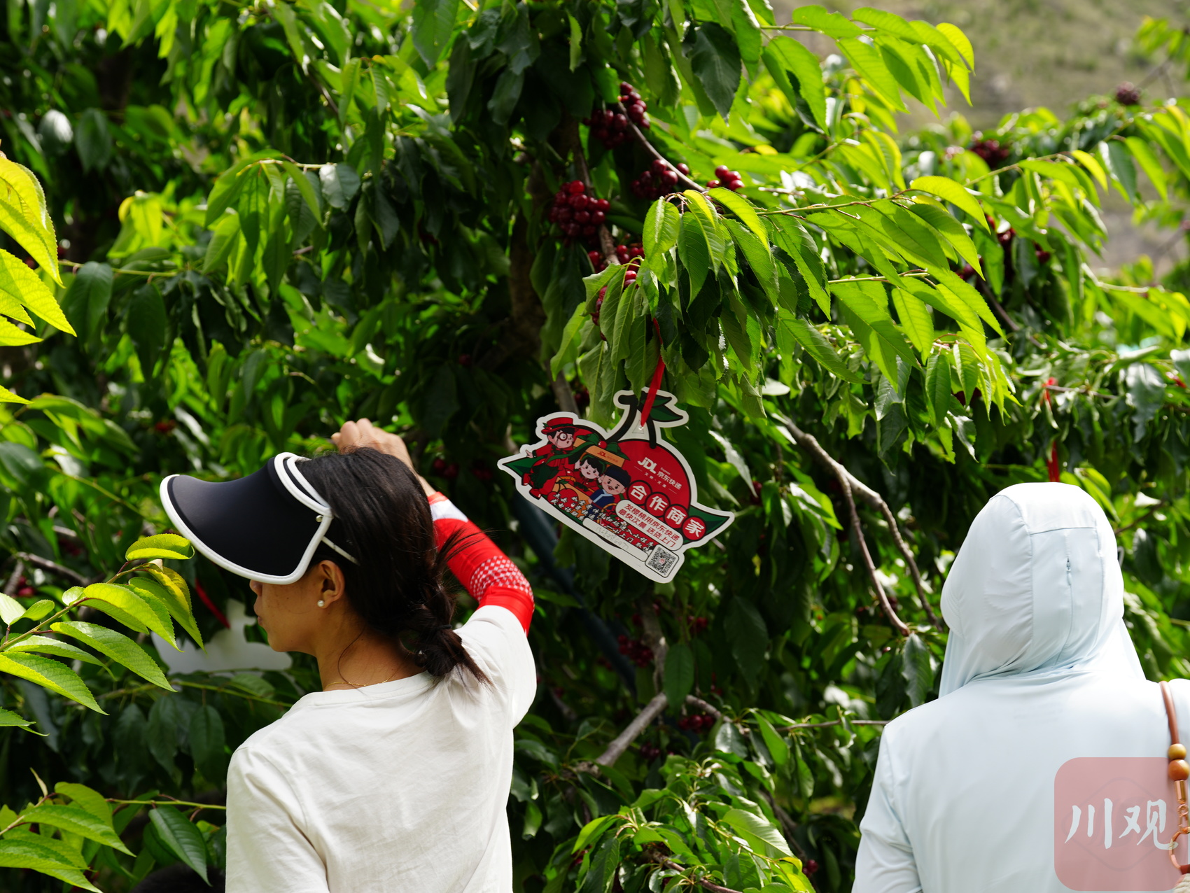 5月24日15时,理县通化乡卡子村桥头人头攒动,印有“通化乡第七届甜樱桃季”字样的主题拍照墙前,游客们争相打卡,定格下该县甜樱桃采摘季的“甜蜜开场”。