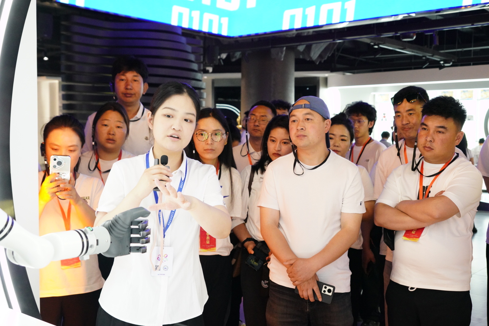 道孚干部群众走进杭州文三数字生活街区。图为工作人员正在为大家讲解智能仿生手。(李江 摄)