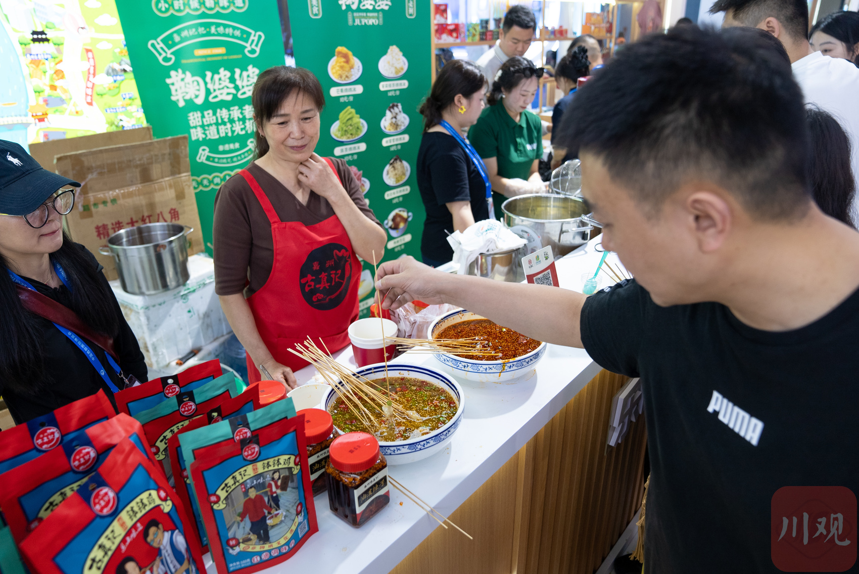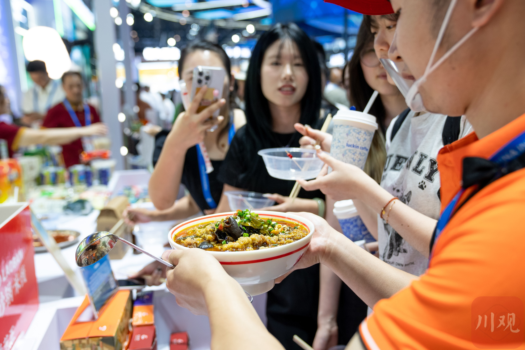 展区内,达州酥肉米线、乐山钵钵鸡、广西平乐冰柿等地方名吃琳琅满目,香气四溢。不少观众手持小吃,边逛边尝,直呼 “过瘾”。展商通过现场制作、试吃互动等方式,让观众更直观地感受地方饮食文化的独特魅力。
