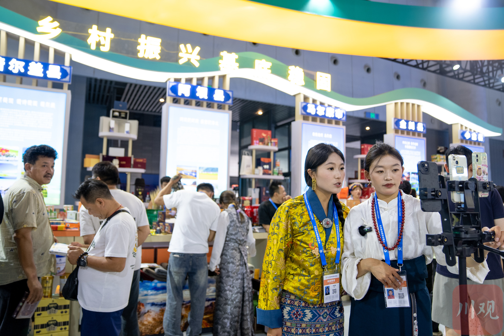 来自阿坝的两位姑娘在直播介绍当地特色农产品。