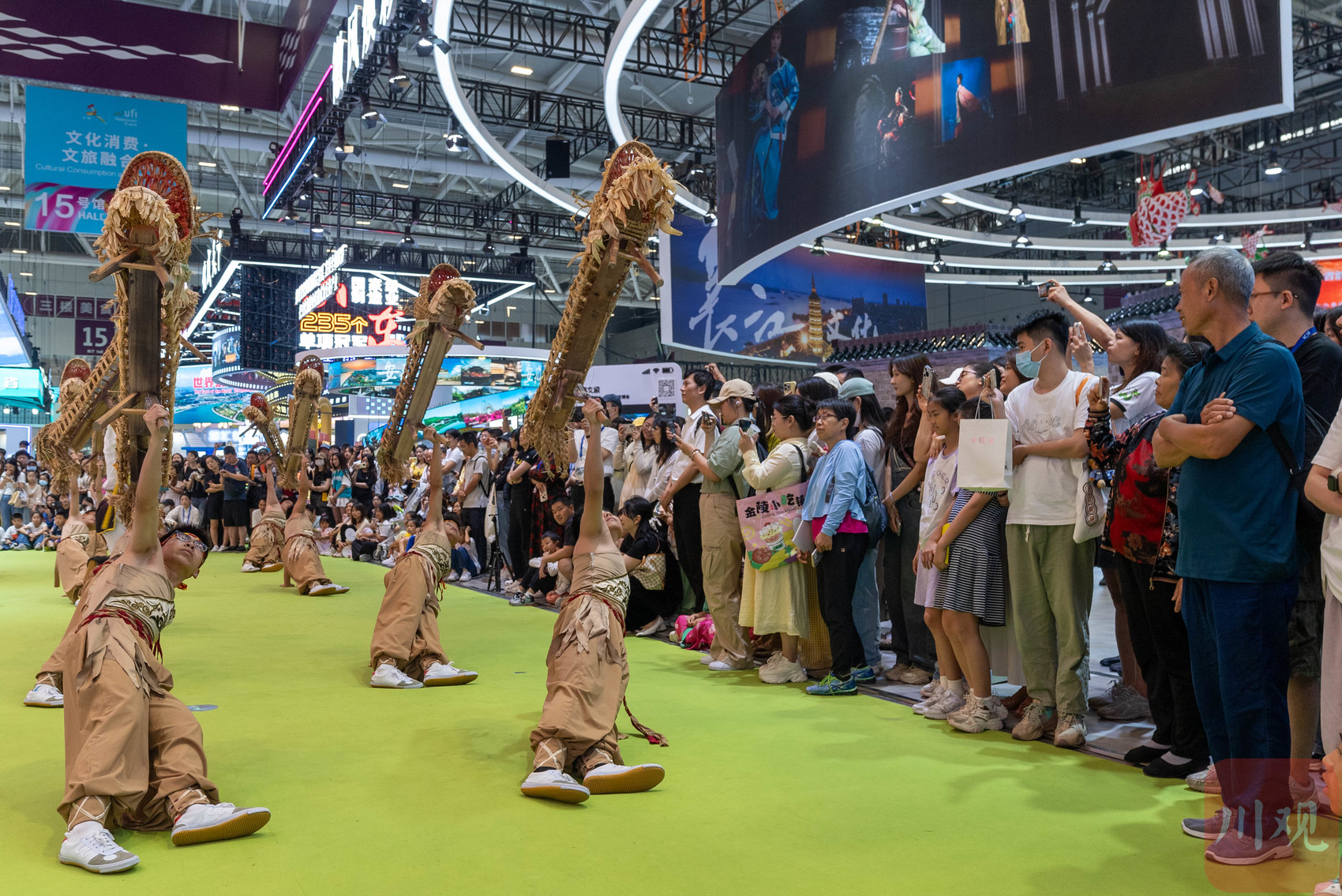 5月25日,第二十一届中国(深圳)国际文化产业博览交易会在深圳国际会展中心火热进行。四川展馆内,极具巴蜀特色的非遗表演现场人气爆棚,点燃观众热情。
