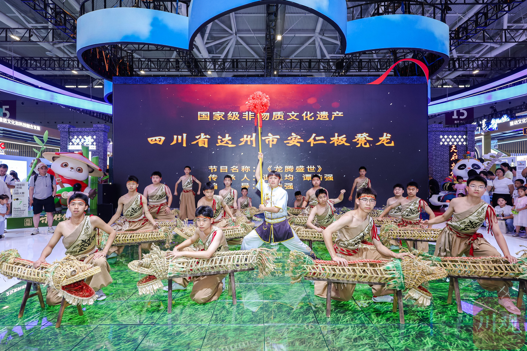 5月25日,四川展馆表演的国家级非遗——达州安仁板凳龙舞。