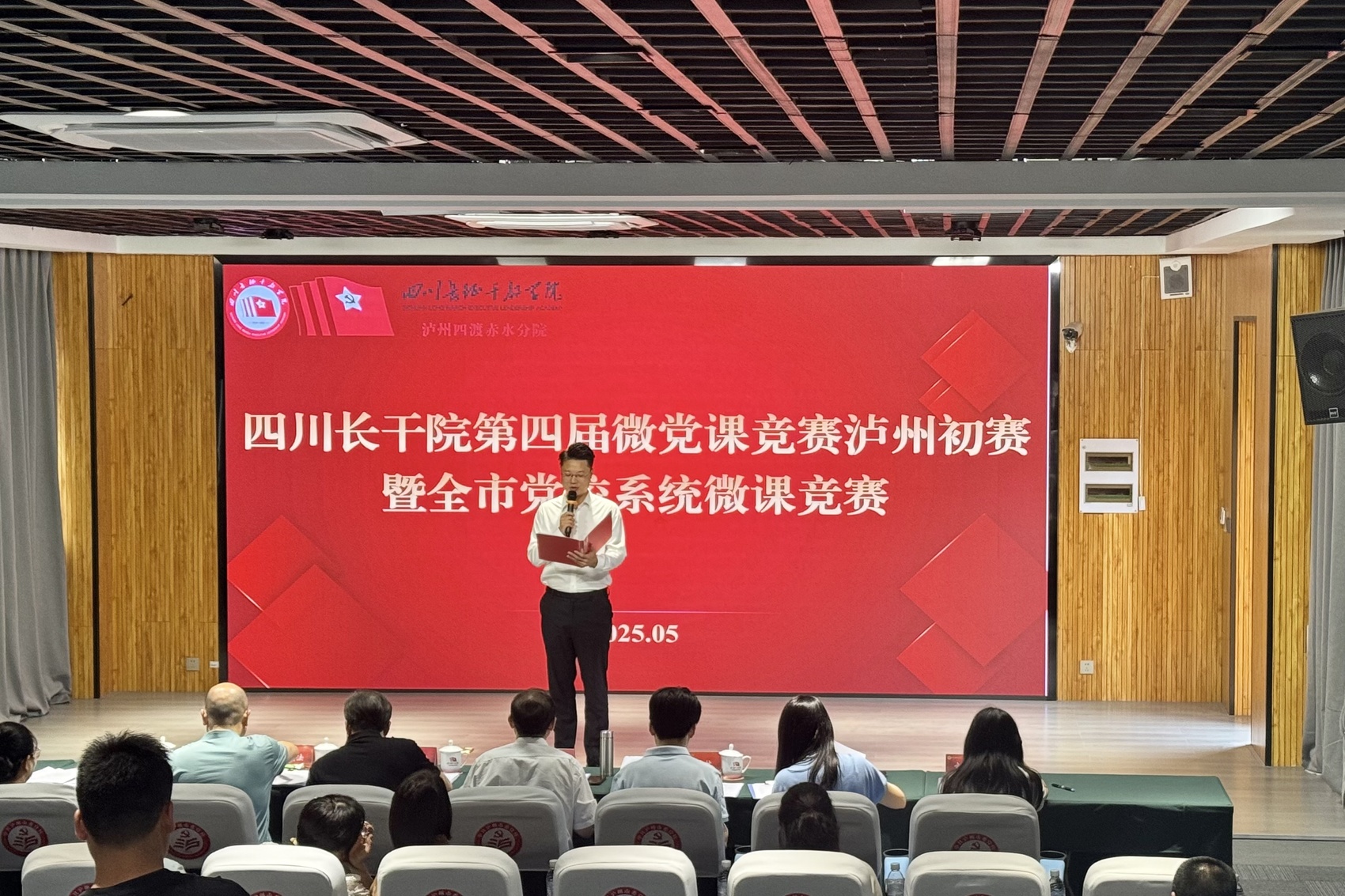 5月23日,四川长征干部学院第四届微党课竞赛泸州四渡赤水分院初赛暨第四届全市党校系统微课竞赛开赛,来自全市党校系统的22名教师围绕竞赛主题,同台进行微党课角逐。