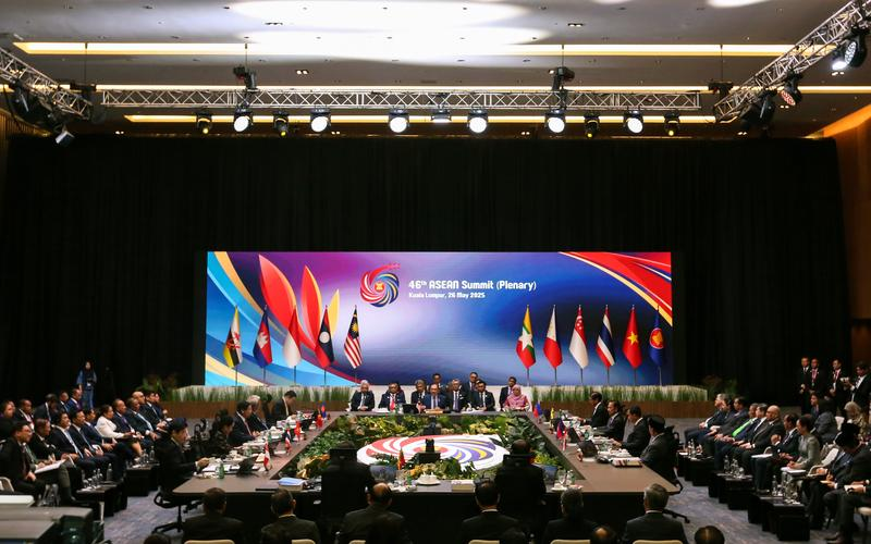 这是5月26日在马来西亚首都吉隆坡拍摄的第46届东盟峰会开幕式现场。新华社记者 马平 摄