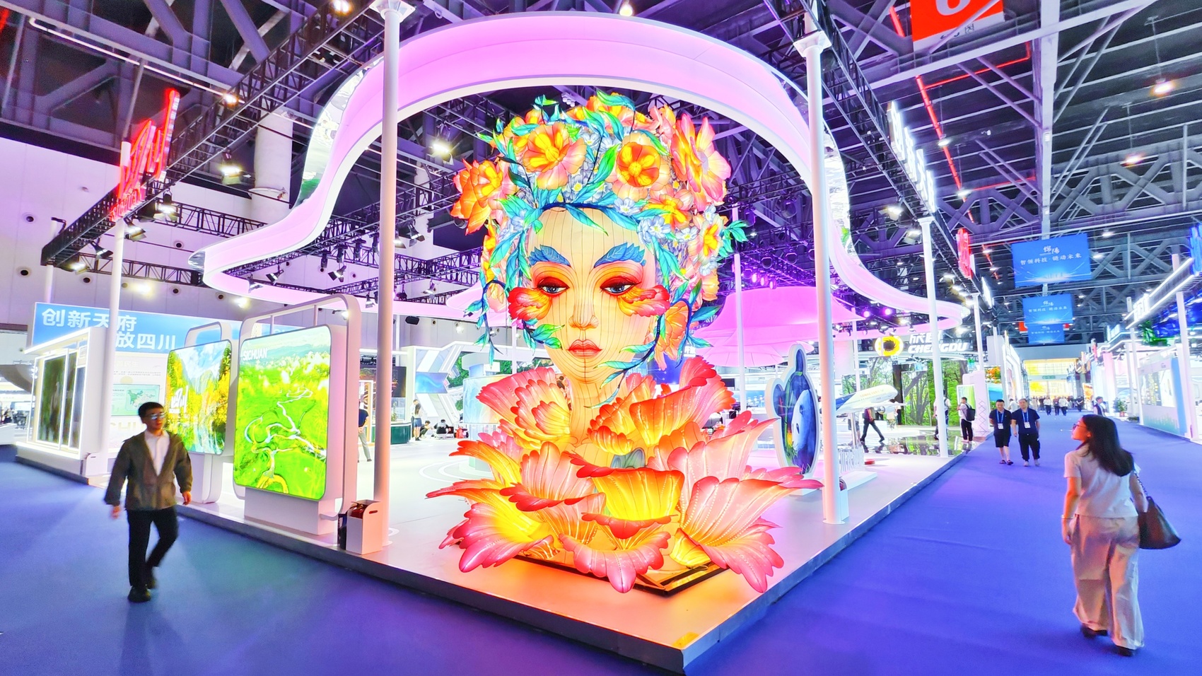 她一边说着,不断有嘉宾前来拍照打卡并且询问,此时四川馆另一个热门打卡点的自贡彩灯“百花女神”,正不断扑闪着她的大眼睛。