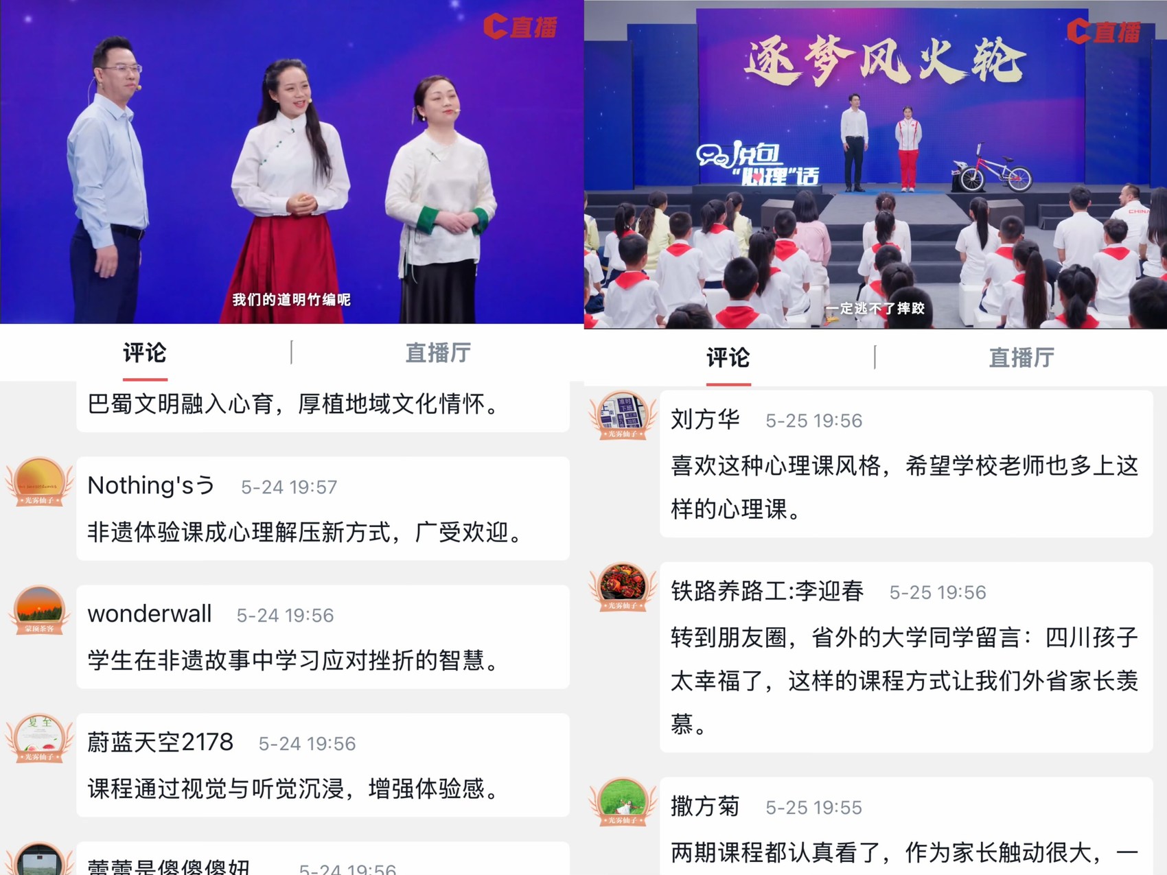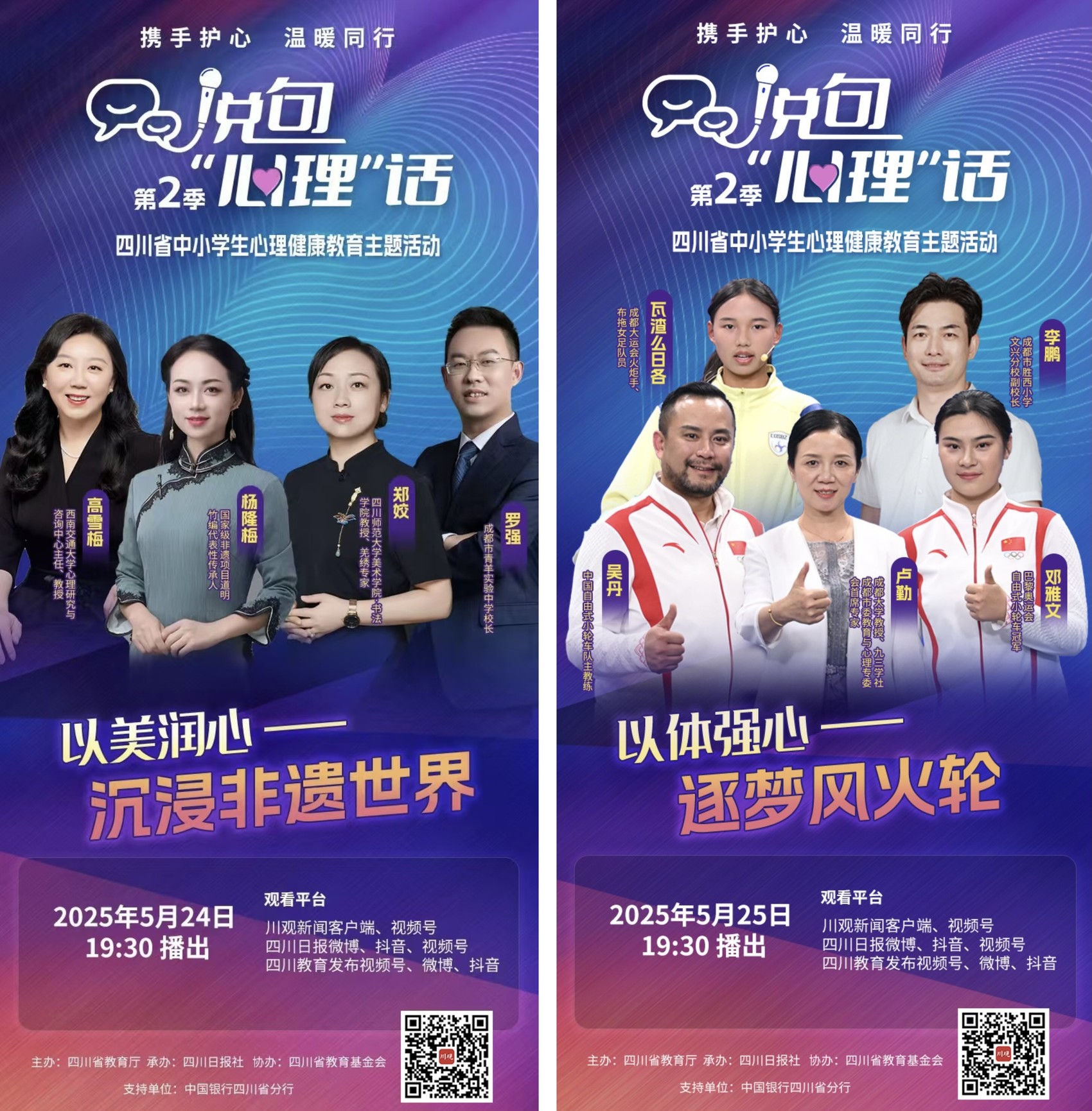 5月24日、25日,由四川省教育厅主办、四川日报社承办、四川省教育基金会协办、中国银行四川省分行支持的“说句‘心理’话——四川省中小学生心理健康教育主题活动”第二季两期视听课圆满播出。