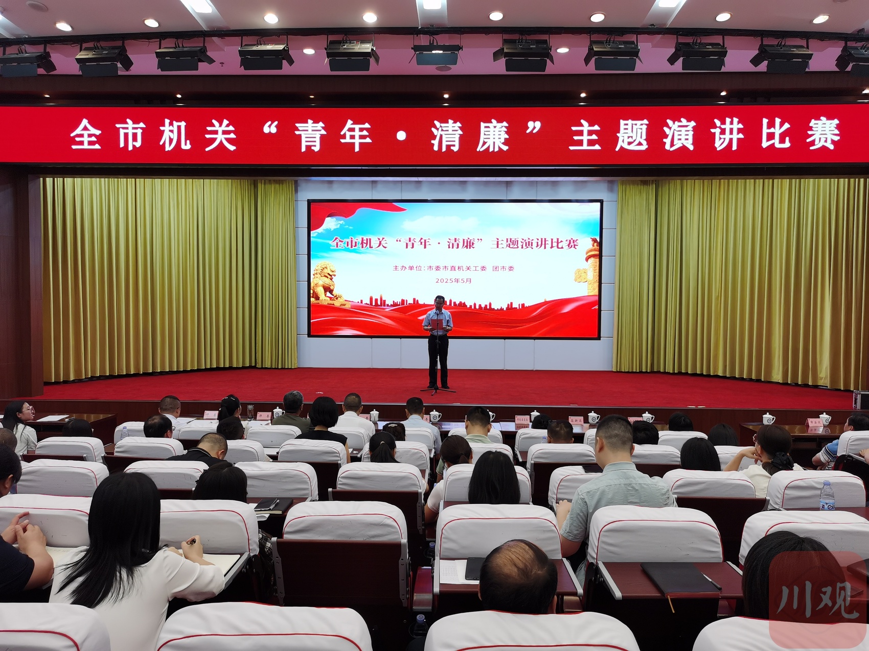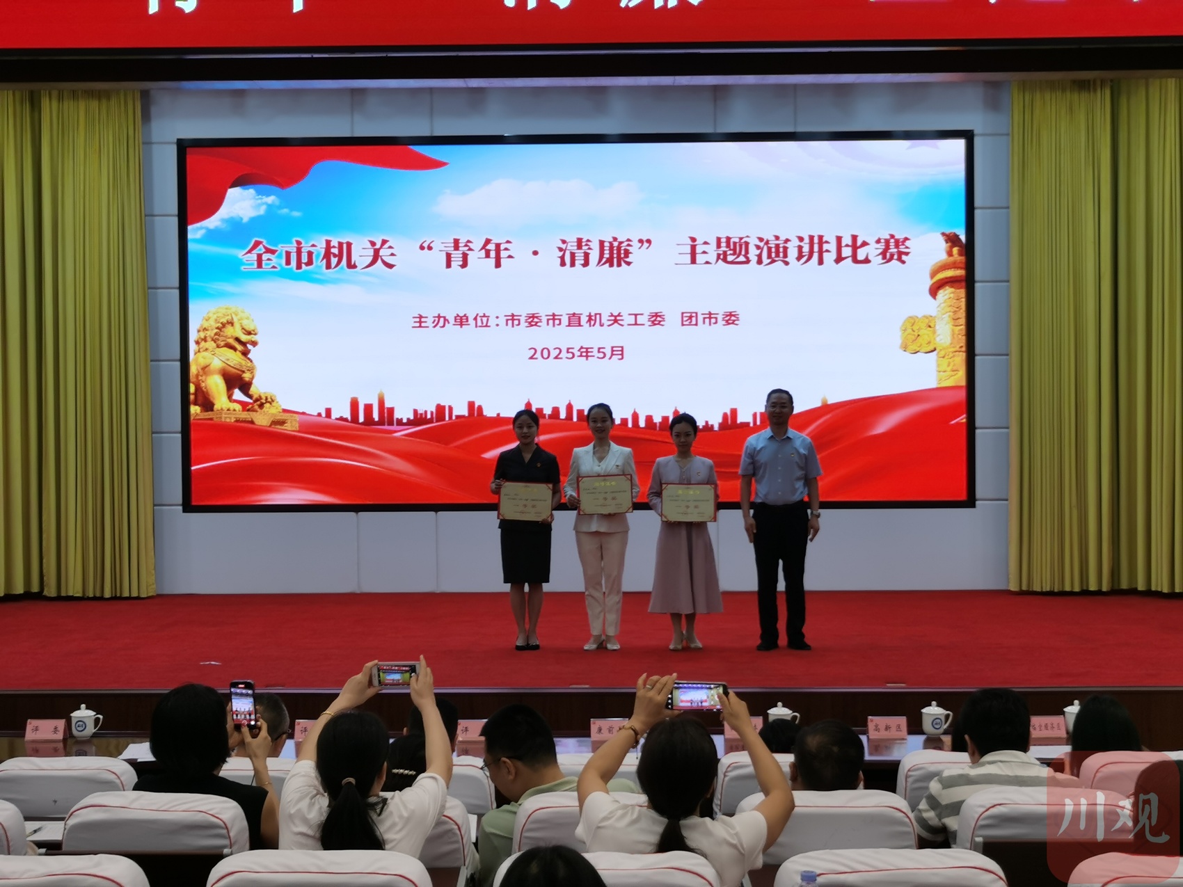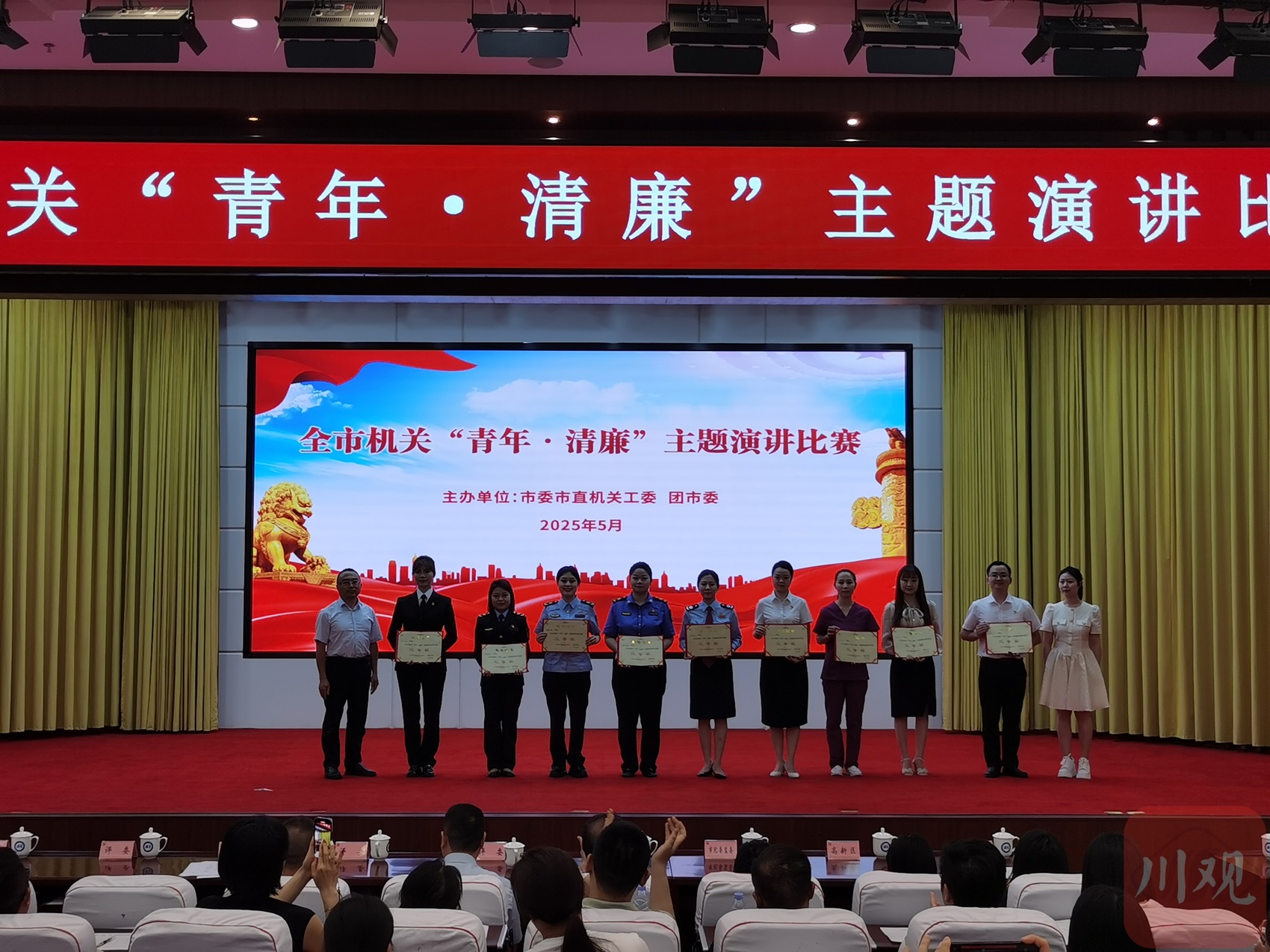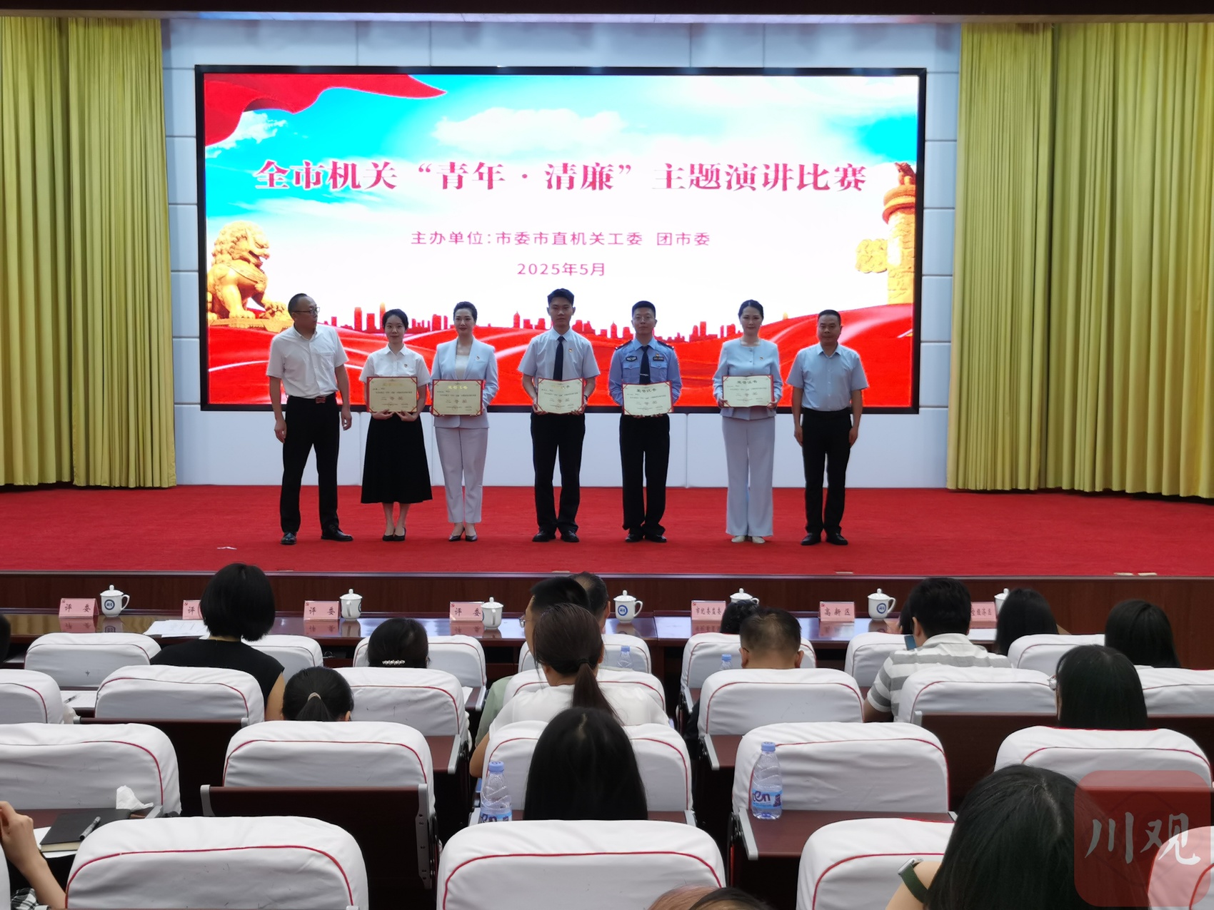 5月26日,资阳市机关“青年·清廉”主题演讲比赛决赛火热开赛。经过前期紧张激烈的预赛选拔,17名选手一路过关斩将,登上决赛“擂台”,最终角逐出一等奖3名,二等奖5名,三等奖9名。
