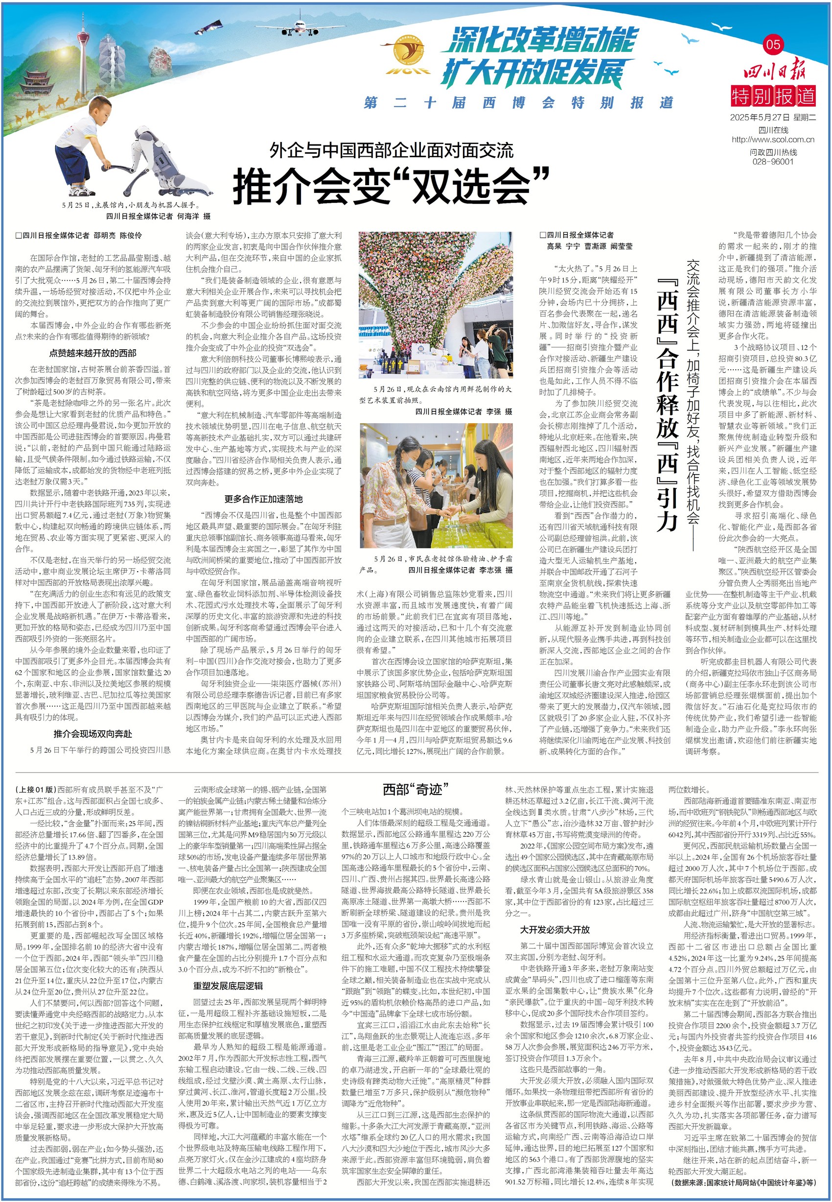 加椅子,加好友,找合作,找机会……这是西博会期间,不少交流推介会上演的场景。昨日,这场外企与中国西部企业面对面会议,更是把推介会变为双选会。关注今日五版,看看这些推介会现场到底有多火爆?现场究竟有哪些“西”引力?