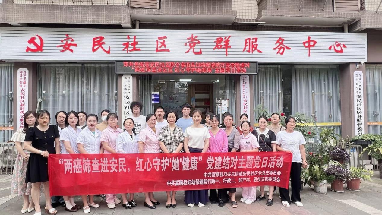 为贯彻落实“健康中国2030”规划纲要,切实增强广大妇女的自我保健意识,普及疾病预防知识,5月23日下午,富顺县妇幼保健院行政后勤党支部、妇产科党支部、医技党支部与安民社区党总支部联合开展“‘两癌’筛查进安民 红心守护‘她’健康”党建结对主题党日活动,通过“党建+健康”模式将乳腺癌、宫颈癌筛查服务送到群众家门口,为社区妇女群众送上一份温暖的健康关怀。